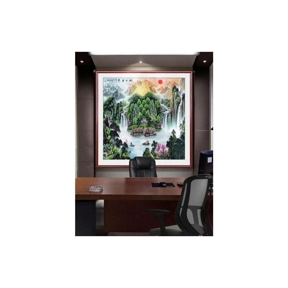 招財開運 旭日東升山水畫 風水靠山圖 寶地生金掛畫 玄關走廊過道裝飾畫 方形國畫 免運