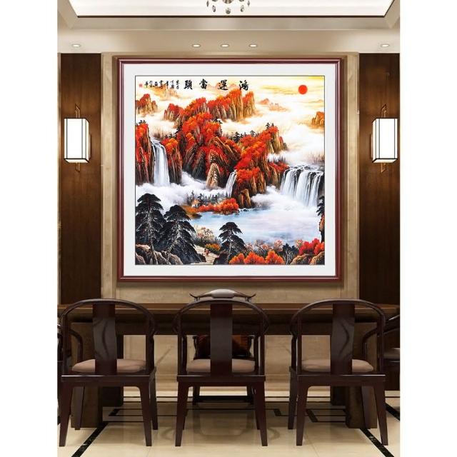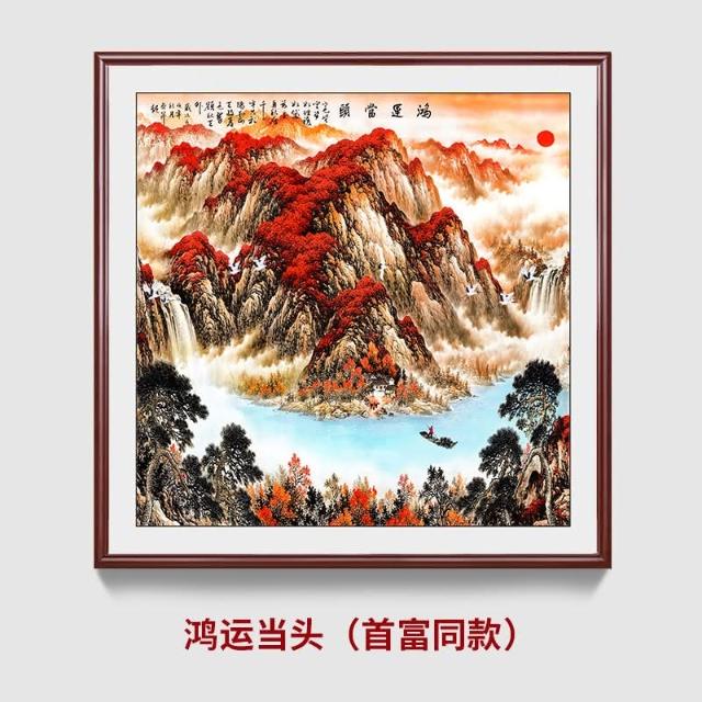招財開運 旭日東升山水畫 風水靠山圖 寶地生金掛畫 玄關走廊過道裝飾畫 方形國畫 免運