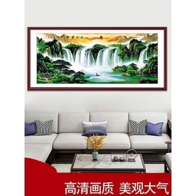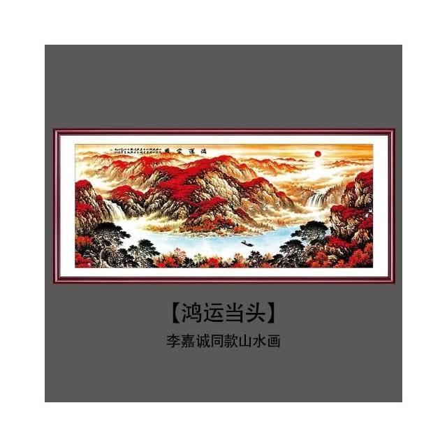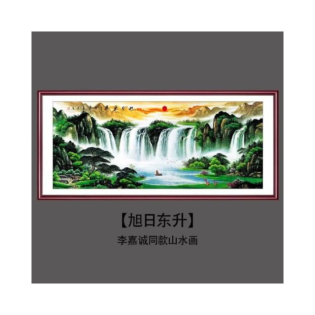 免運 招財開運 旭日東升山水畫 客廳掛畫 辦公室靠山招財字畫 聚寶盆背景墻裝飾壁畫