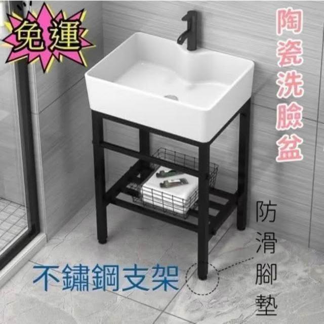 洗手台 小戶型落地洗手盆 一體陶瓷盆 加厚不銹鋼支架 洗臉洗漱盆 洗手池 洗手槽 水槽 陶瓷洗臉池