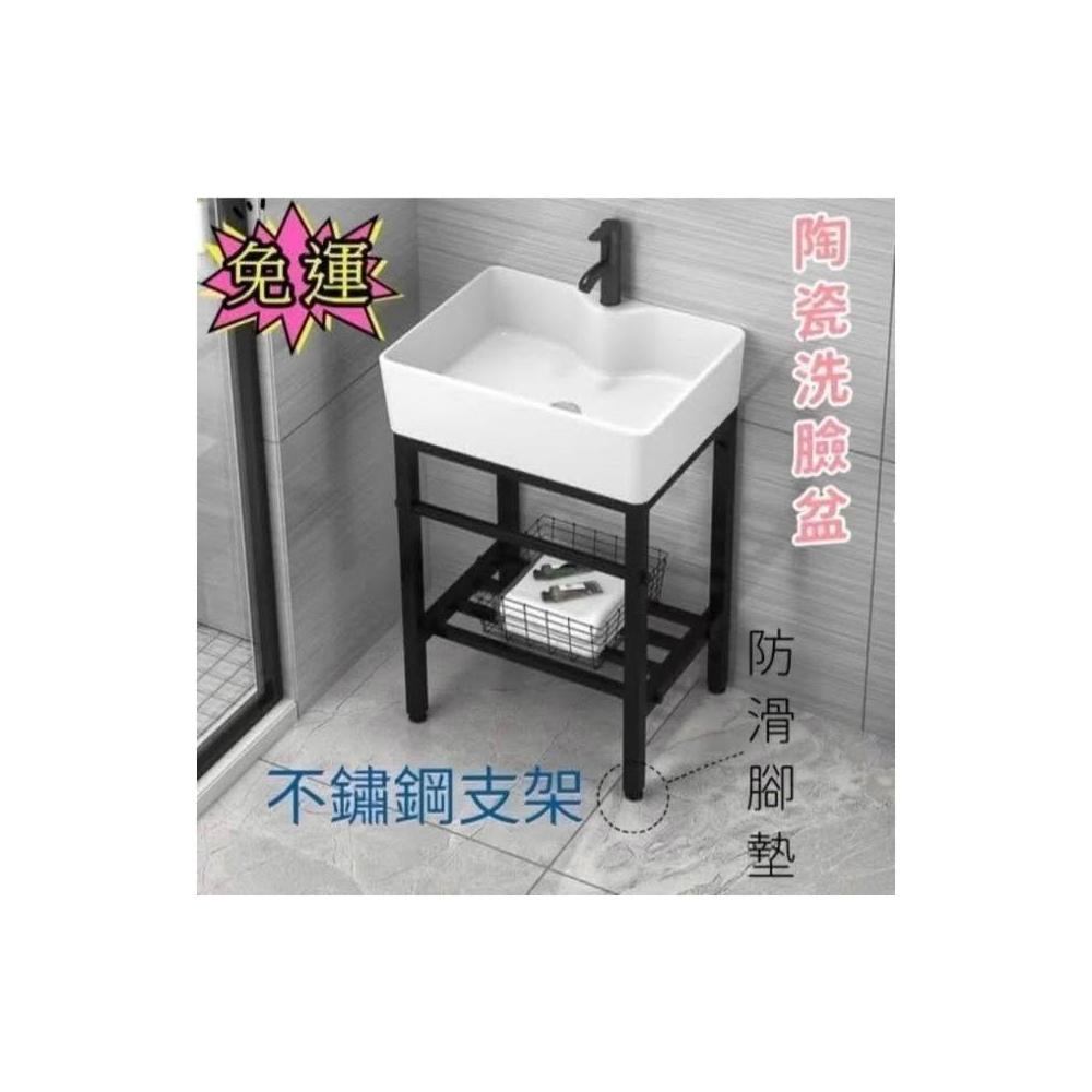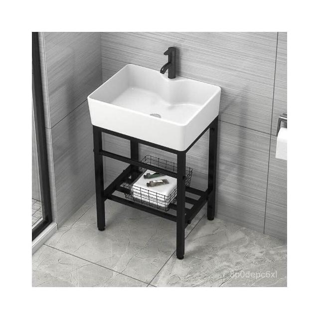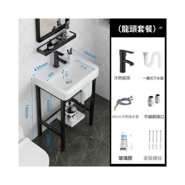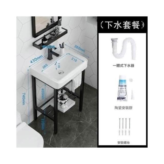 洗手台 小戶型落地洗手盆 一體陶瓷盆 加厚不銹鋼支架 洗臉洗漱盆 洗手池 洗手槽 水槽 陶瓷洗臉池