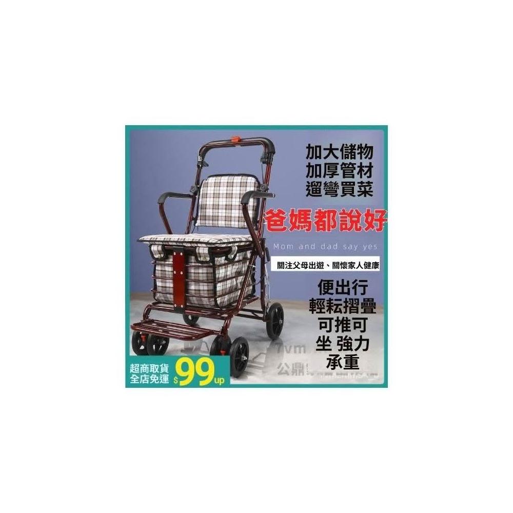 特惠🔥免運 買菜購物車 折疊購物車 座椅可坐 四輪買菜 助步可推小拉車 老人手推車 老人買菜椅 老人買菜車折疊手拉菜籃