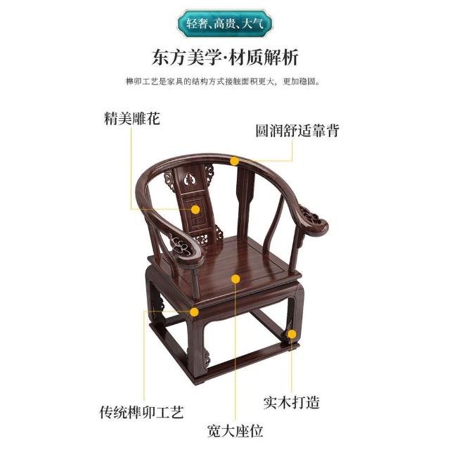 太師椅 中式椅 茶桌椅 主人椅 實木圈椅中式仿古茶臺泡茶圍椅新中式太師椅單人官帽椅主人位圈椅