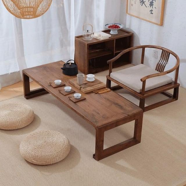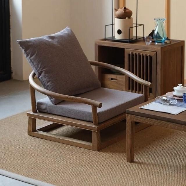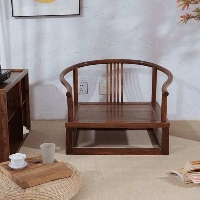 太師椅 中式椅 茶桌椅 主人椅 中式榻榻米圈椅陽臺矮椅老榆木懶人實木單人茶椅子茶室休閒椅組閤