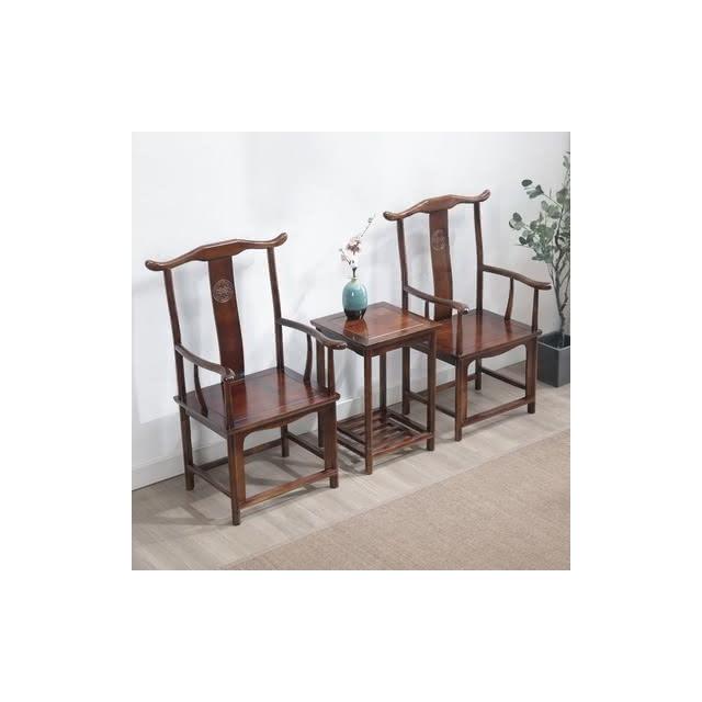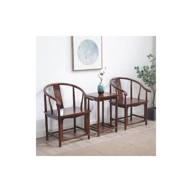 免運 榆木茶椅單人椅中式圍椅太師椅官帽椅禪椅傢用椅子實木圈椅三件套