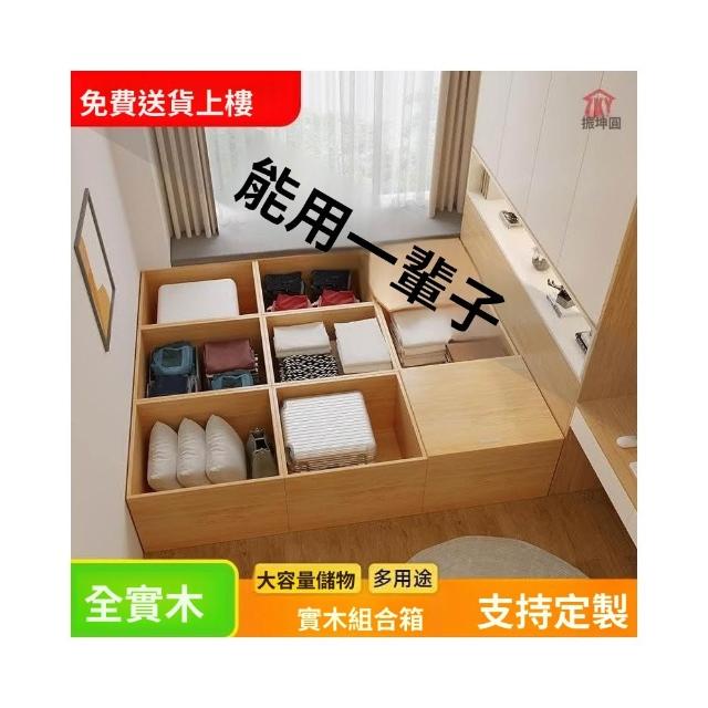 榻榻米木箱子定製拼接床實木客廳多功能床邊地臺櫃高箱收納箱組合 紐西蘭松木榻榻米木箱子