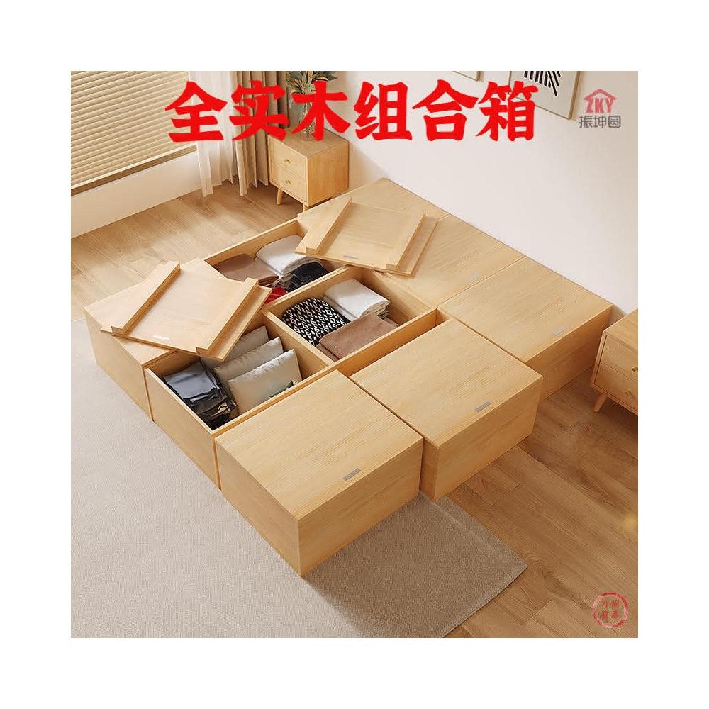 榻榻米木箱子定製拼接床實木客廳多功能床邊地臺櫃高箱收納箱組合 紐西蘭松木榻榻米木箱子