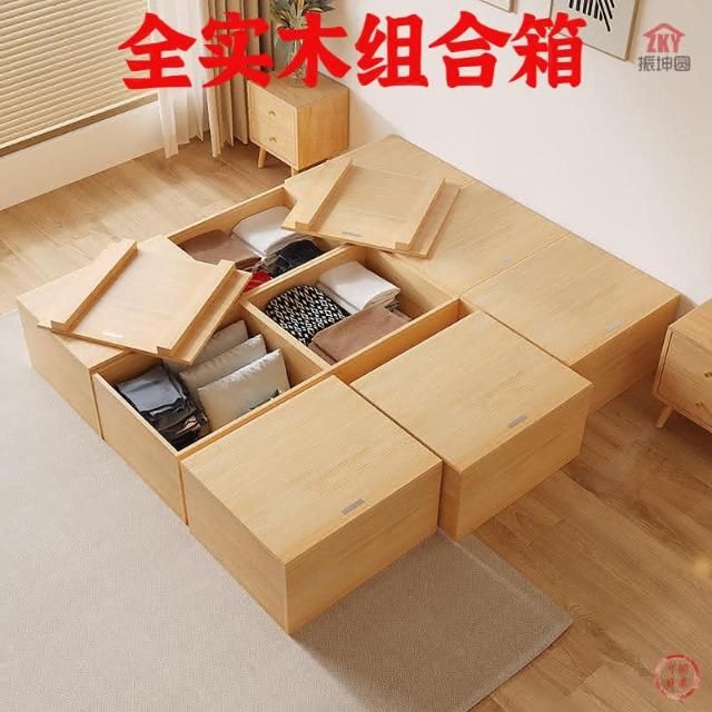 榻榻米木箱子定製拼接床實木客廳多功能床邊地臺櫃高箱收納箱組合 紐西蘭松木榻榻米木箱子