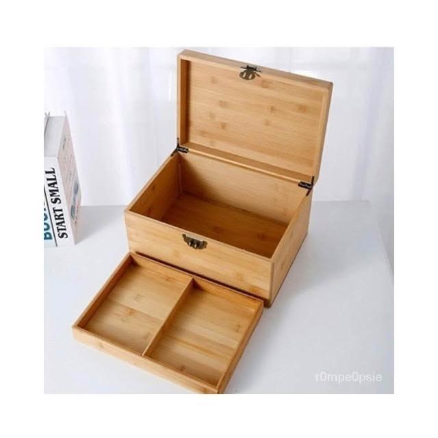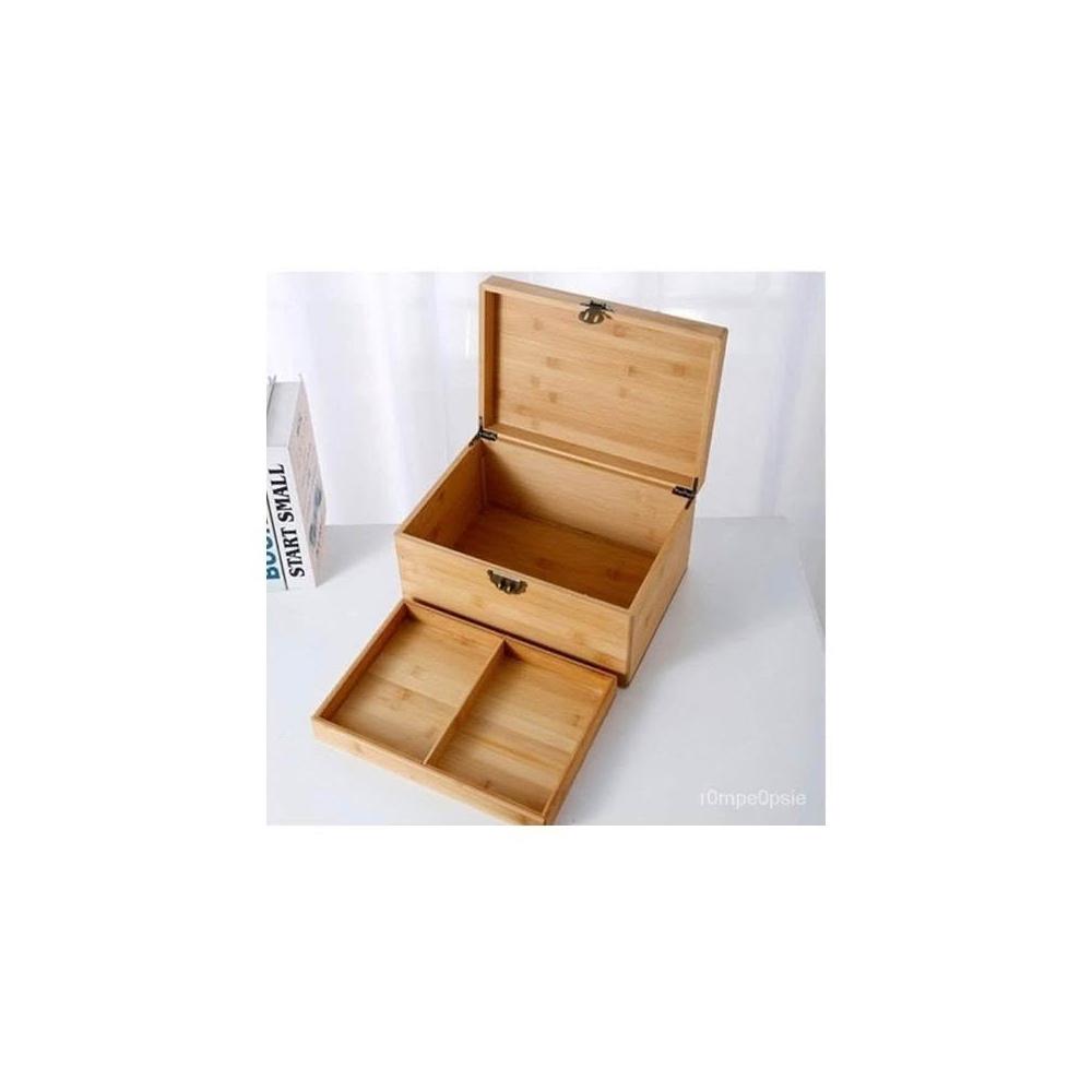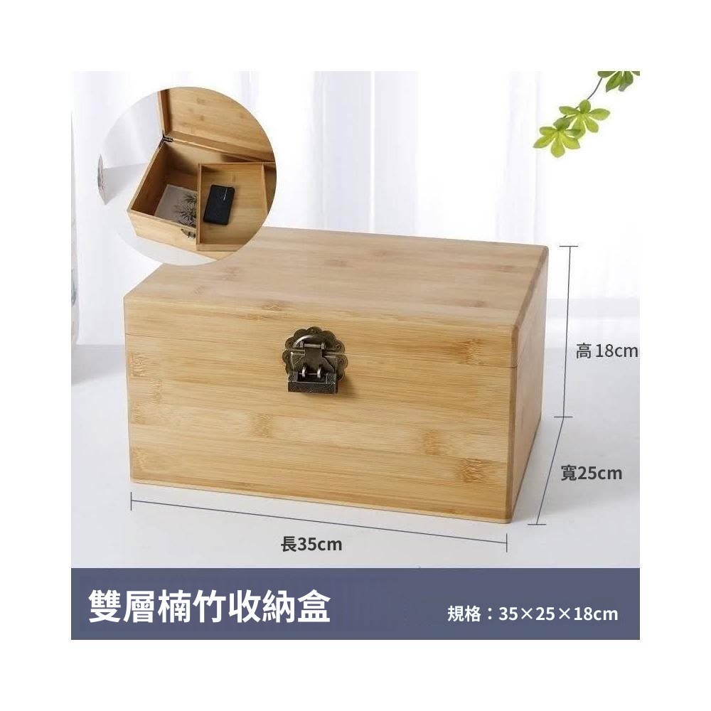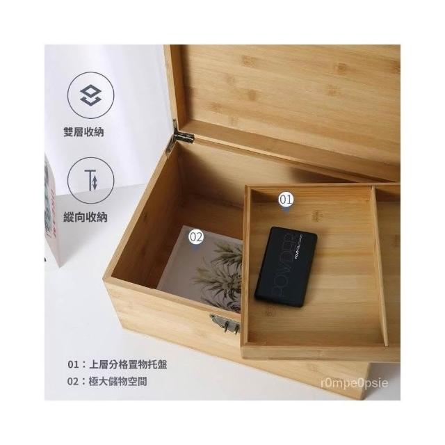 桌麵雙層帶鎖 收納箱 中式儲物盒 雜物箱木箱 木盒 木質收納 復古收納箱 證件木盒 醫藥箱子 楠竹大號