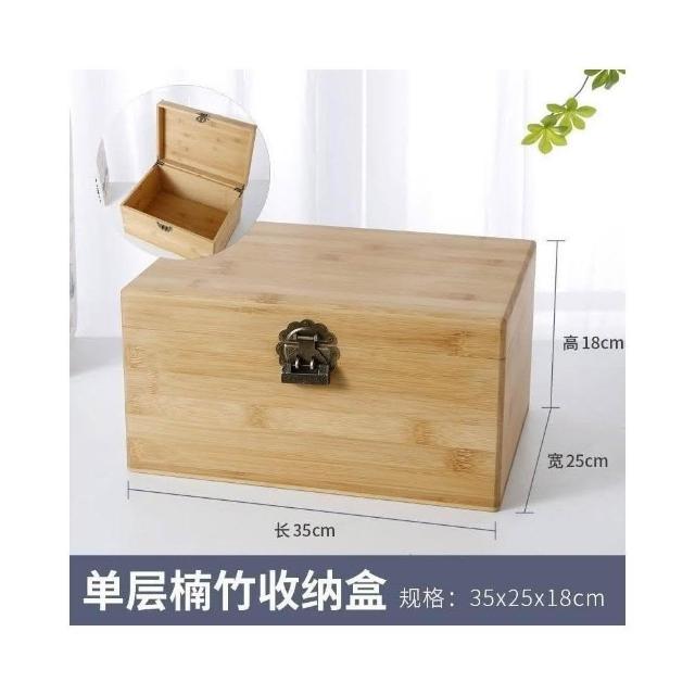 桌麵雙層帶鎖 收納箱 中式儲物盒 雜物箱木箱 木盒 木質收納 復古收納箱 證件木盒 醫藥箱子 楠竹大號