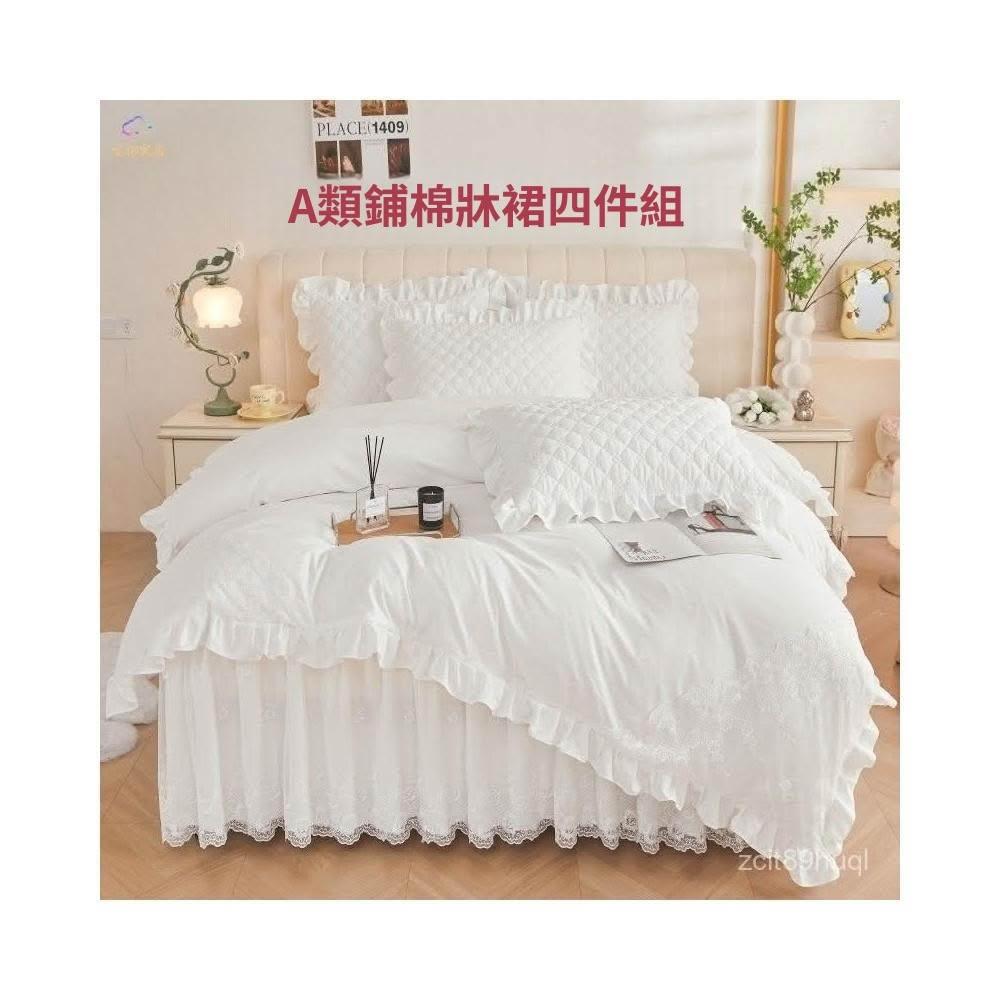 A類 韓版 雲錦棉床裙四件組 床包組 床裙組 床罩 蕾絲花邊 帶花邊床包 親膚柔軟裸睡 被套 特大床包 鋪棉床包床裙