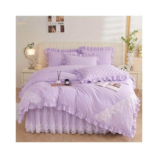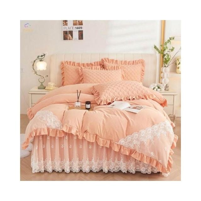 A類 韓版 雲錦棉床裙四件組 床包組 床裙組 床罩 蕾絲花邊 帶花邊床包 親膚柔軟裸睡 被套 特大床包 鋪棉床包床裙
