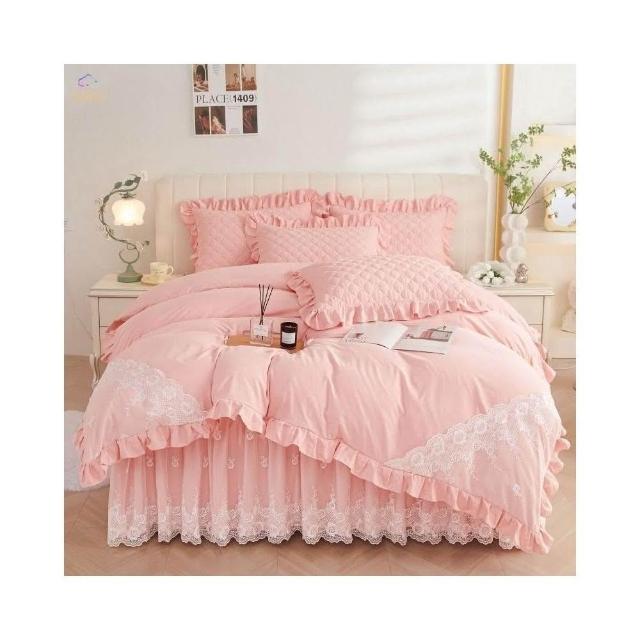 A類 韓版 雲錦棉床裙四件組 床包組 床裙組 床罩 蕾絲花邊 帶花邊床包 親膚柔軟裸睡 被套 特大床包 鋪棉床包床裙