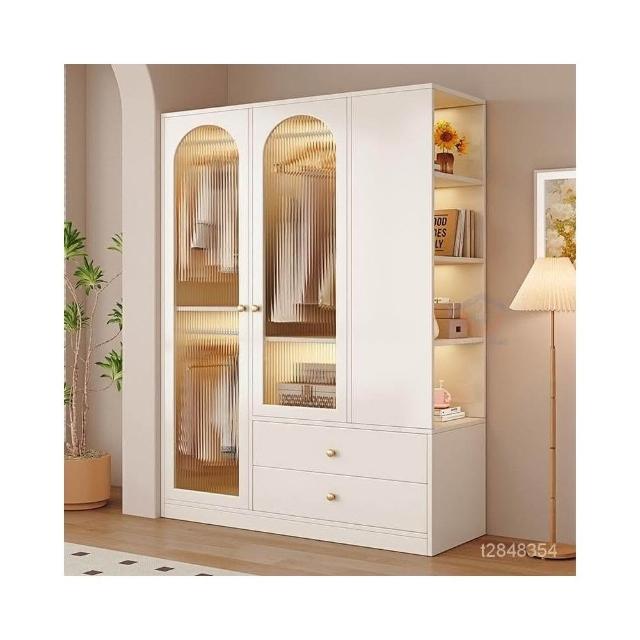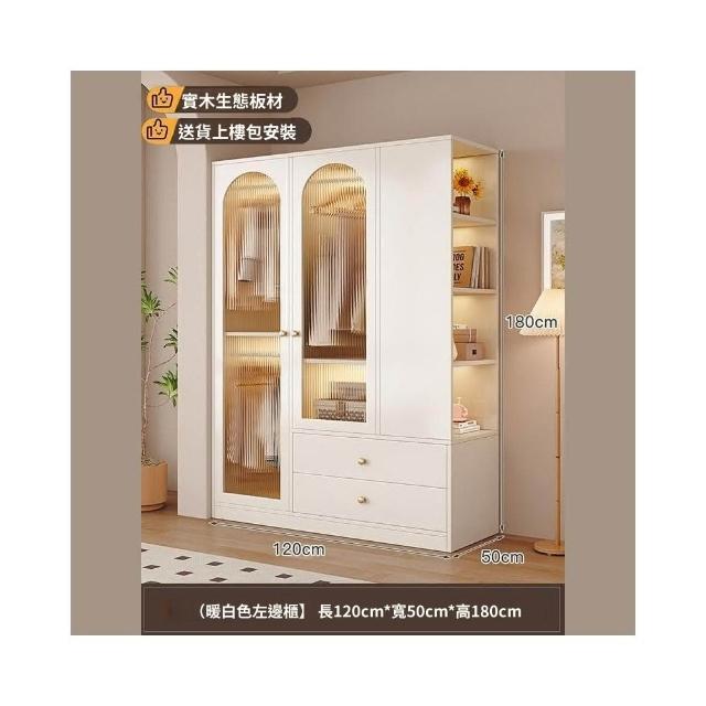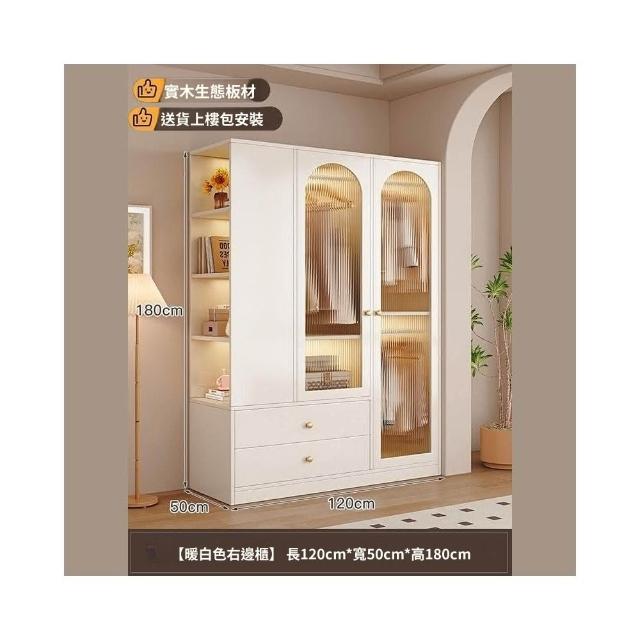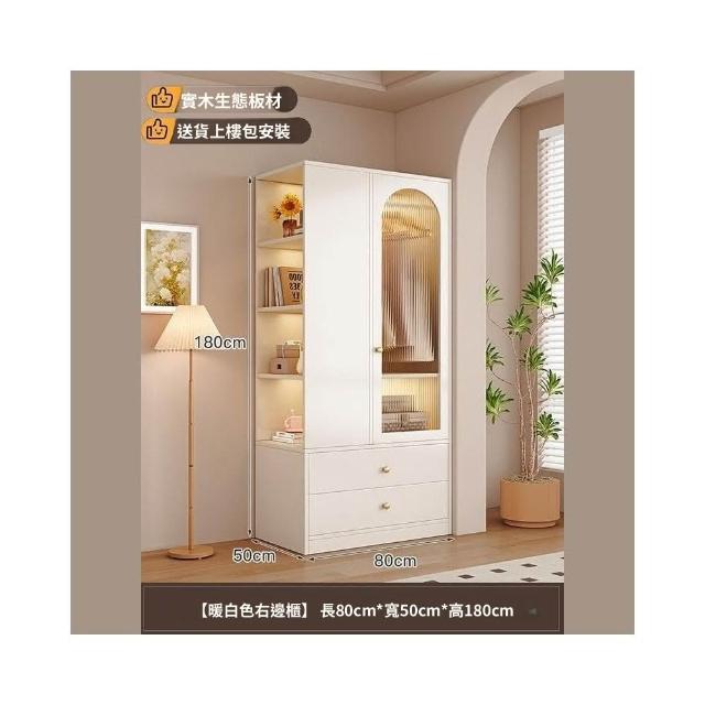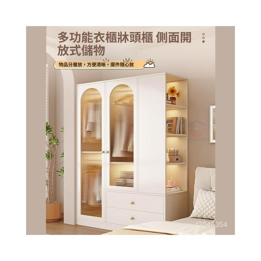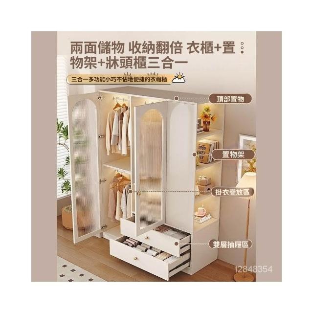 🔥免運⚡實木衣櫃床頭櫃一體奶油風簡約小戶型臥室衣櫥床邊家用收納儲物櫃 主臥衣櫃 臥室衣櫃 落地衣帽櫃 臥室掛衣櫃 衣櫥