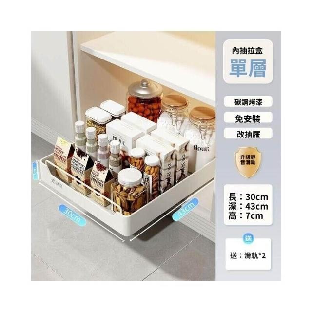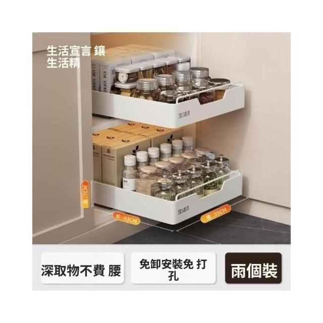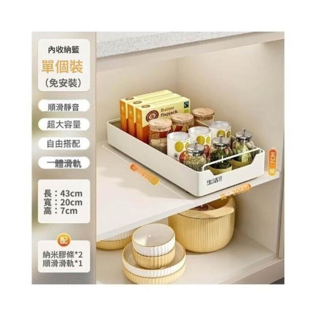 抽拉式收納盒 滑軌拉籃 櫥櫃內抽屜拉籃 深櫃收納抽屜 抽取式收納盒 櫥櫃拉籃帶滑軌 免安裝免打孔 抽拉式抽屜