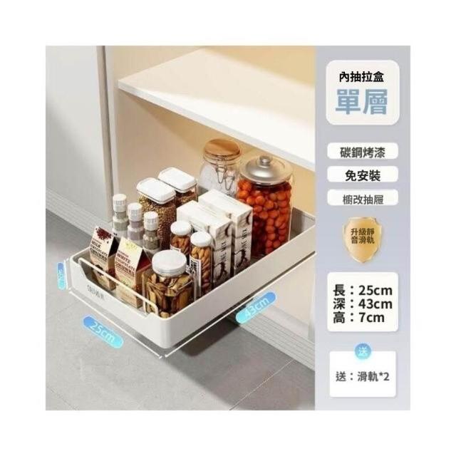 抽拉式收納盒 滑軌拉籃 櫥櫃內抽屜拉籃 深櫃收納抽屜 抽取式收納盒 櫥櫃拉籃帶滑軌 免安裝免打孔 抽拉式抽屜