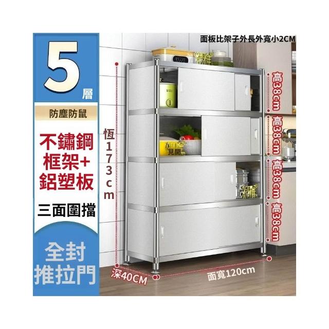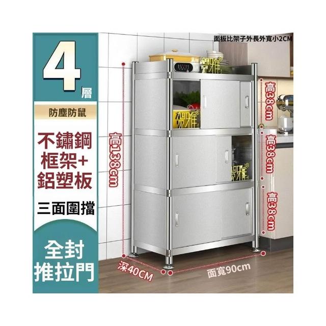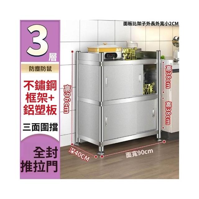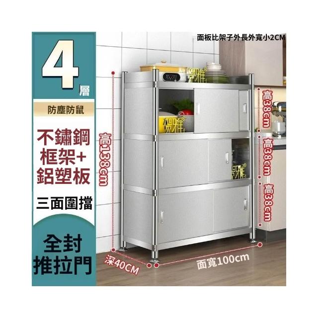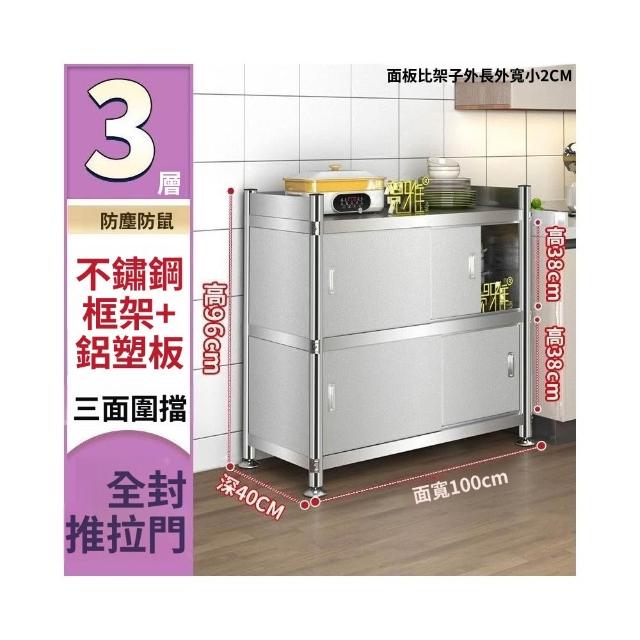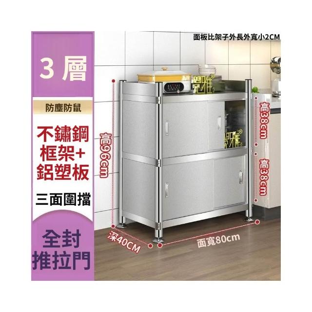 不銹鋼廚房置物架落地多層推拉門儲物櫃全封閉收納櫃碗筷鍋架 廠家直銷