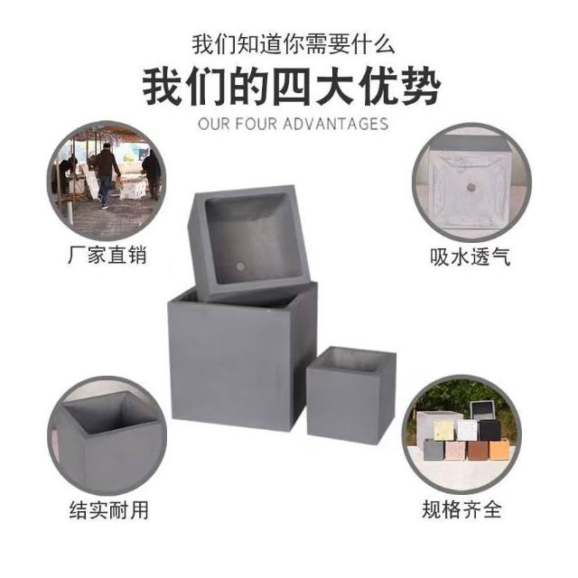 真水泥+玻璃纖維耐用不易裂 高方形花盆創意簡約長方形大口徑水泥直方盆戶外落地種植箱可定製可暴曬水泥花盆