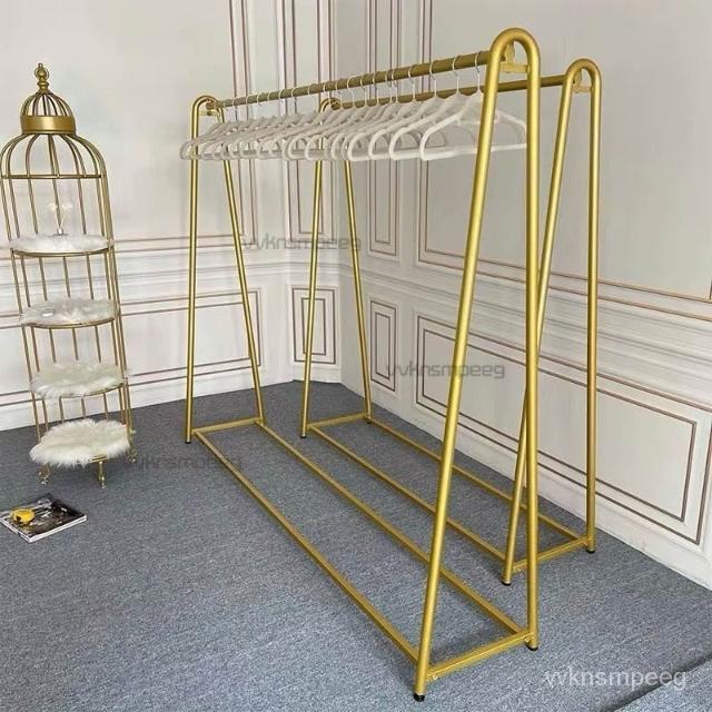免運掛衣架 衣架桿 服裝店展示架 服飾店落地架 金色掛衣架 衣服陳列架 店麵側掛專用架子 服飾店組閤掛衣架 服飾店陳列架