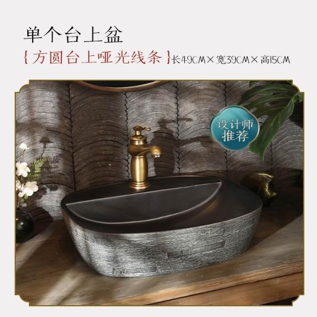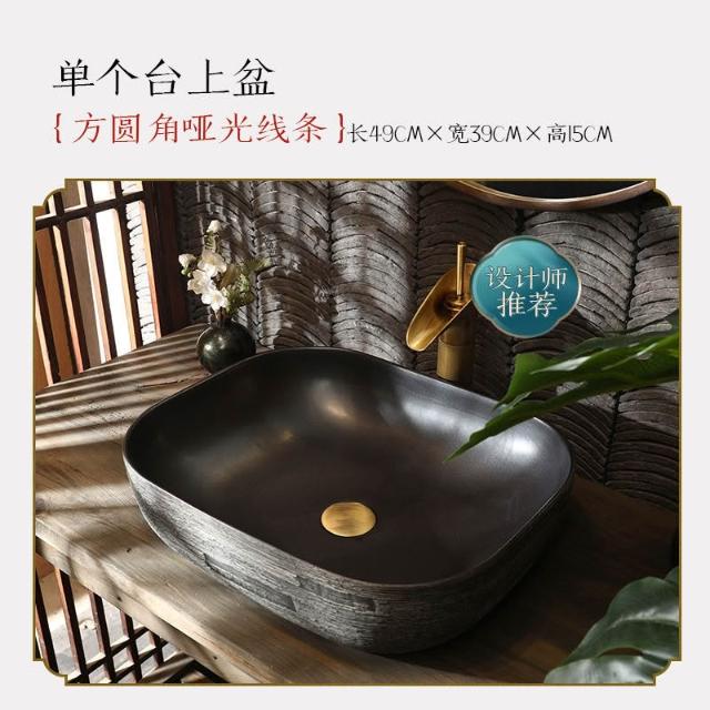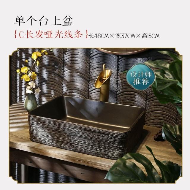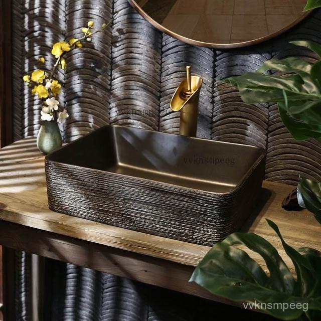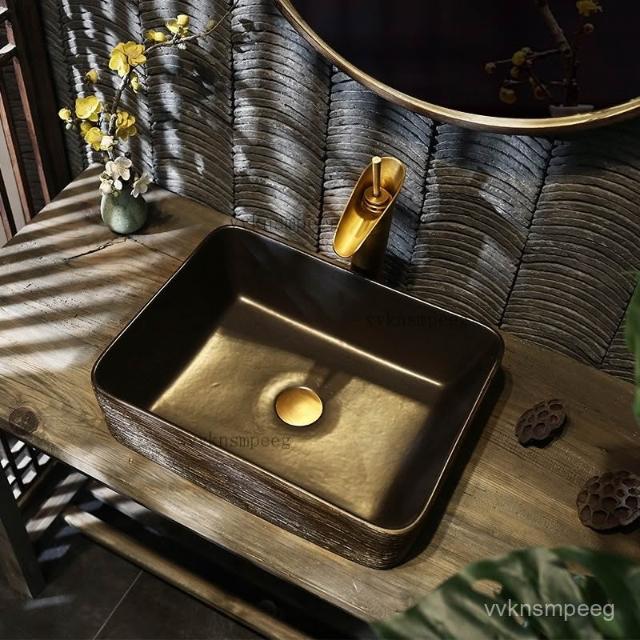 破損包賠 創意復古臺上盆陶瓷洗手盆方形中式藝術臺盆仿古洗臉盆家用