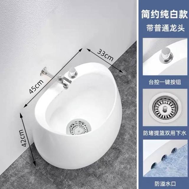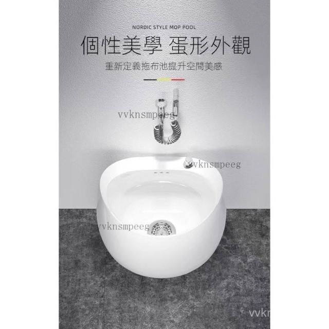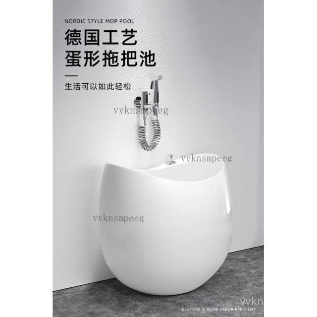 免運 拖把池 家用陽臺衛生間蛋形墩布池 陶瓷拖布池 落地式洗拖把盆