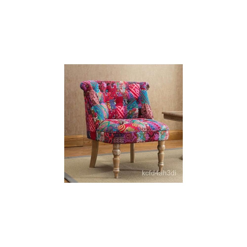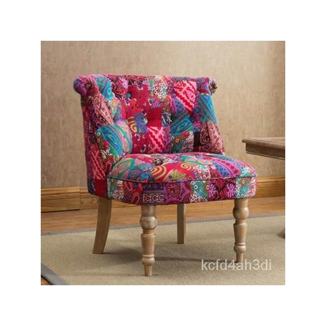 波希米亞風 仿古花布拉釦休閒單人沙發 拚布風做舊主人椅 美甲椅房間公婆椅1人坐沙發布沙發客人椅可配成一桌二椅