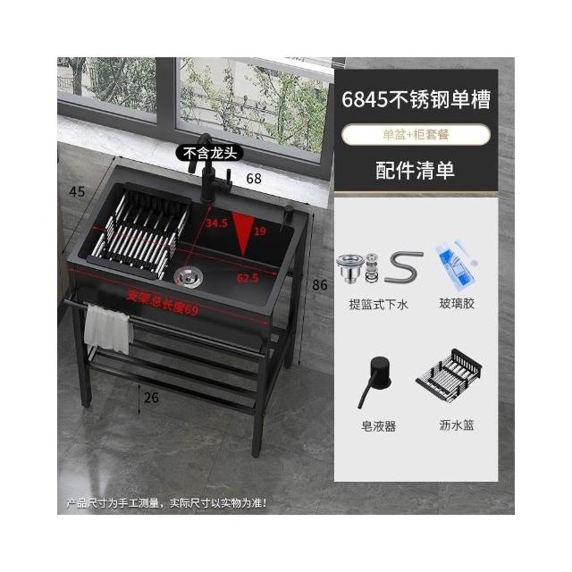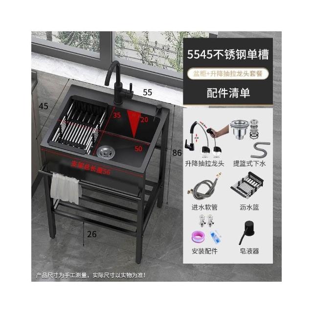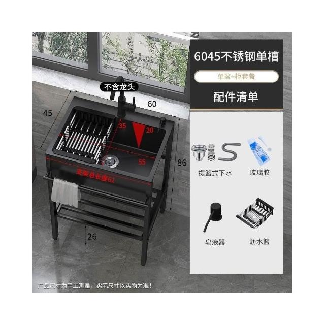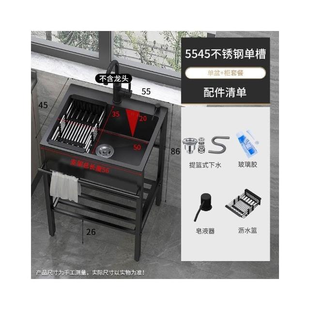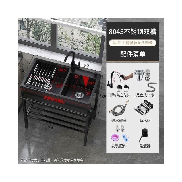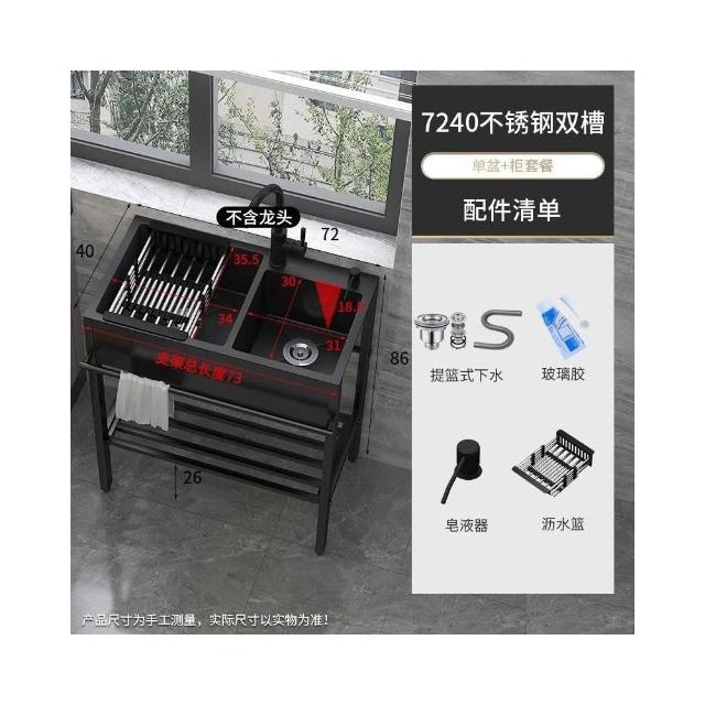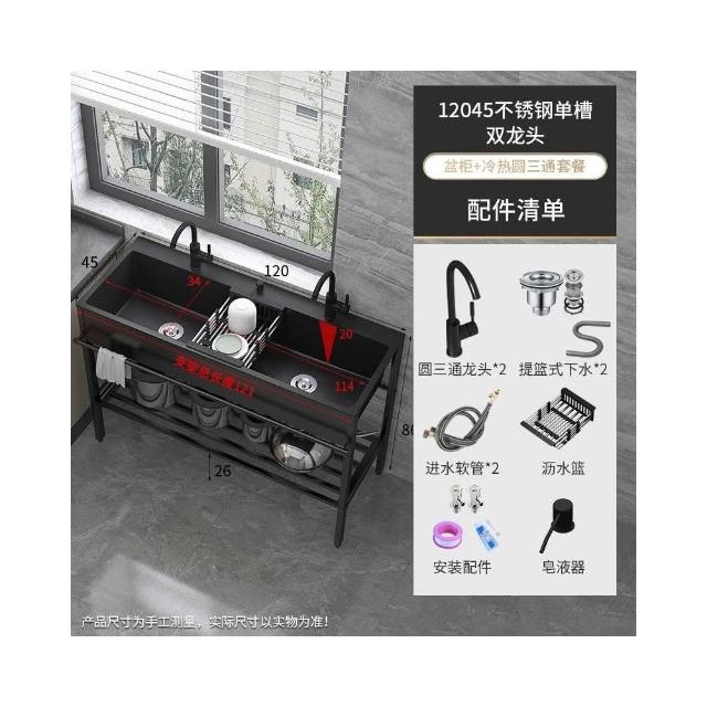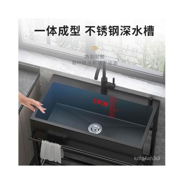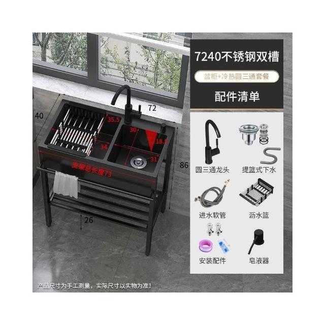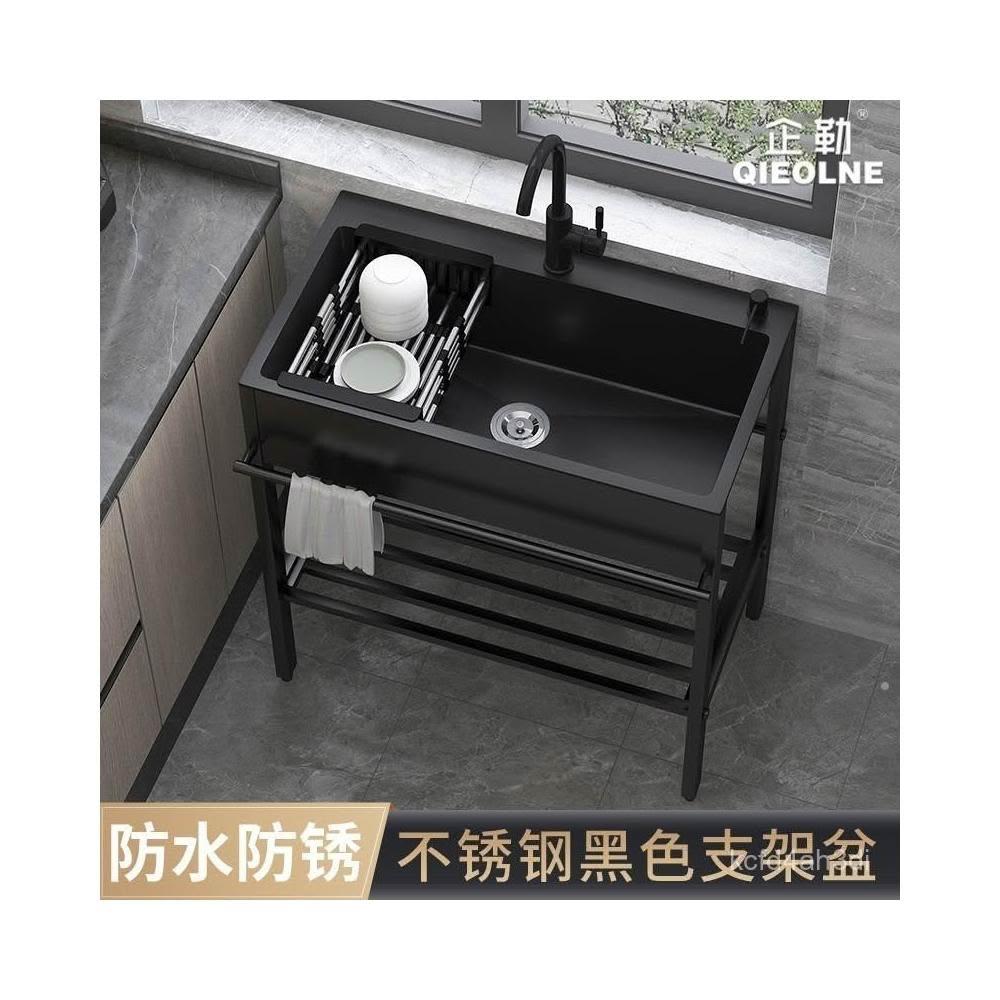 免運 不鏽鋼水槽 洗手槽 洗手臺 洗碗池 流理臺 黑色支架盆 雙槽帶支架落地式 廚房洗菜盆大單槽陽臺洗碗池