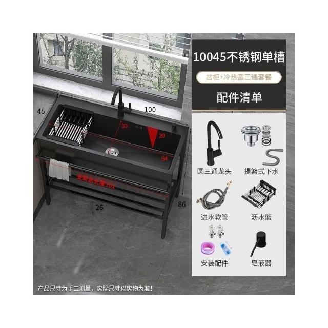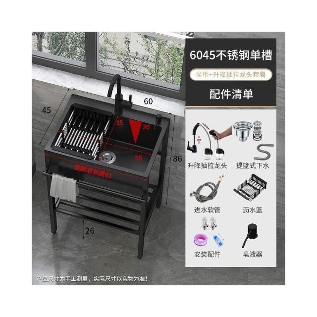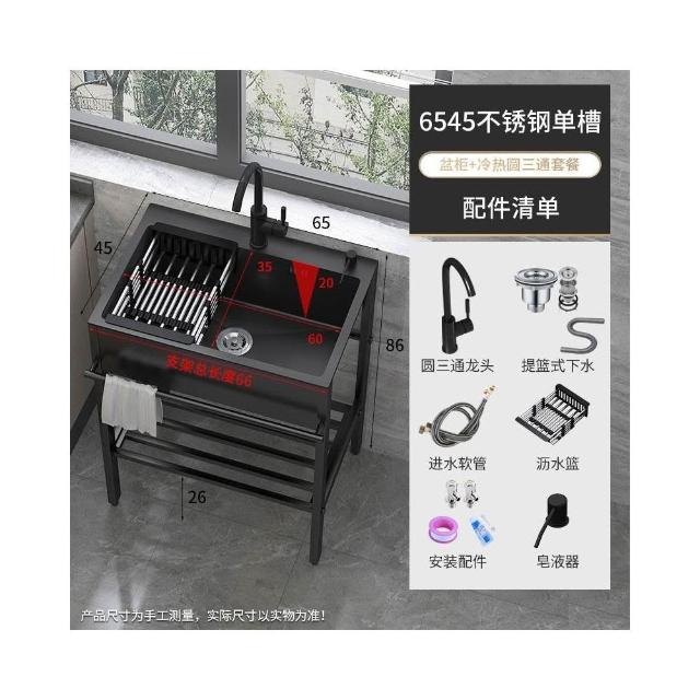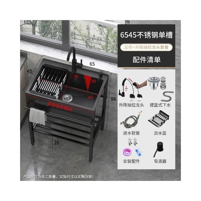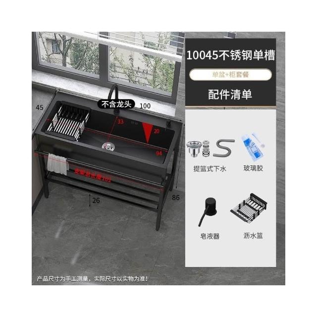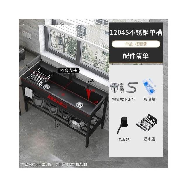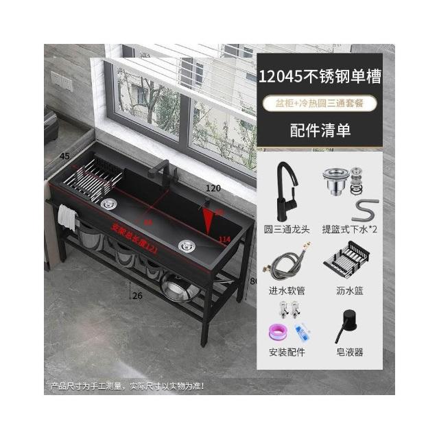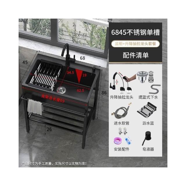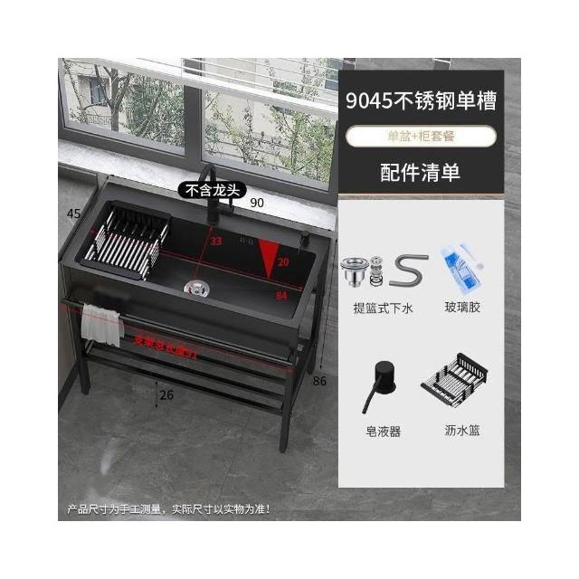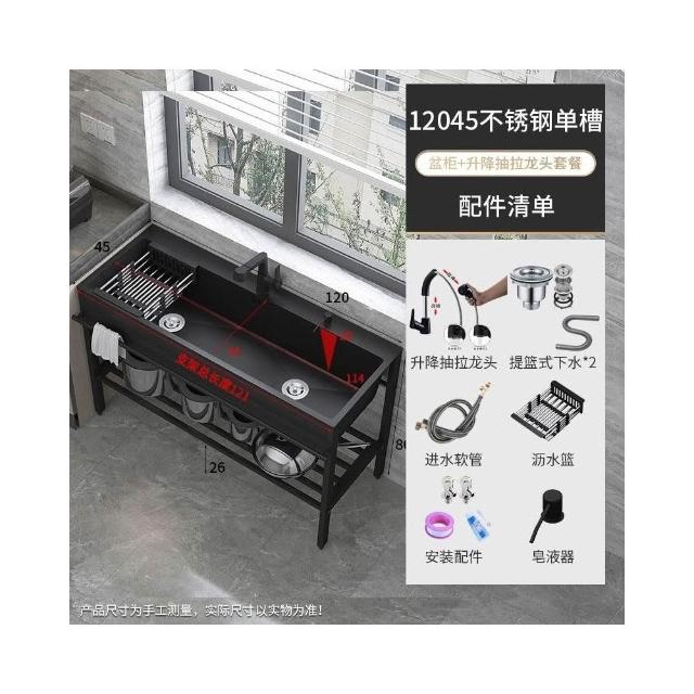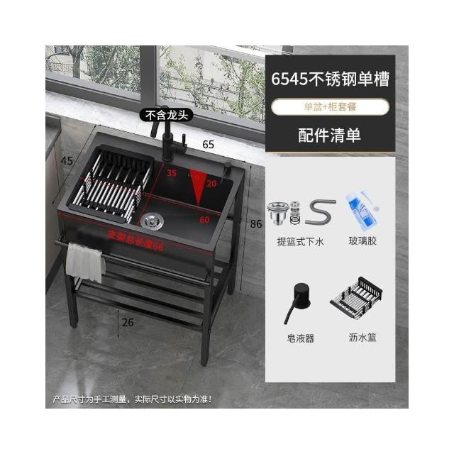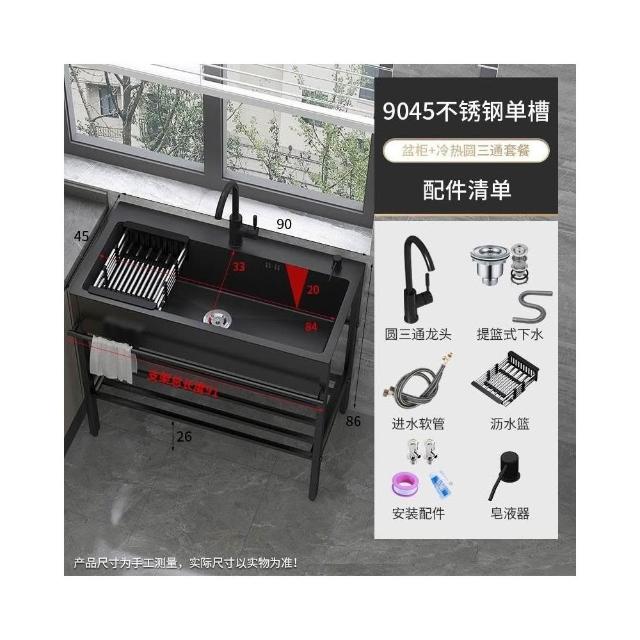 免運 不鏽鋼水槽 洗手槽 洗手臺 洗碗池 流理臺 黑色支架盆 雙槽帶支架落地式 廚房洗菜盆大單槽陽臺洗碗池