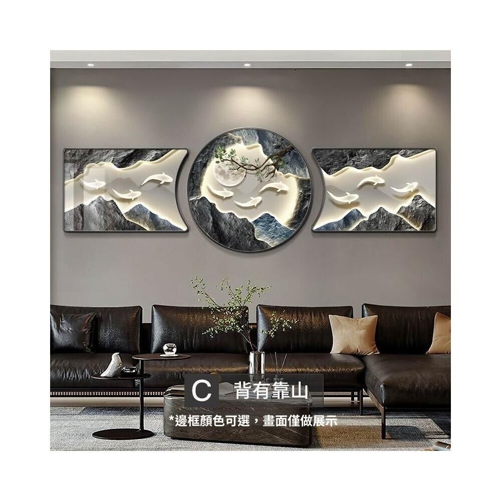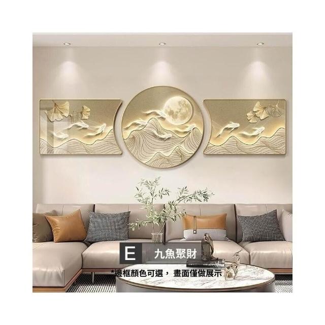 客廳裝飾畵九魚聚財圖壁畵背有靠山高檔大氣沙發背景墻掛畵三聯畵 壁畫裝飾 客廳掛畫 風水畫 高檔大氣沙發背景牆 沙發掛畫