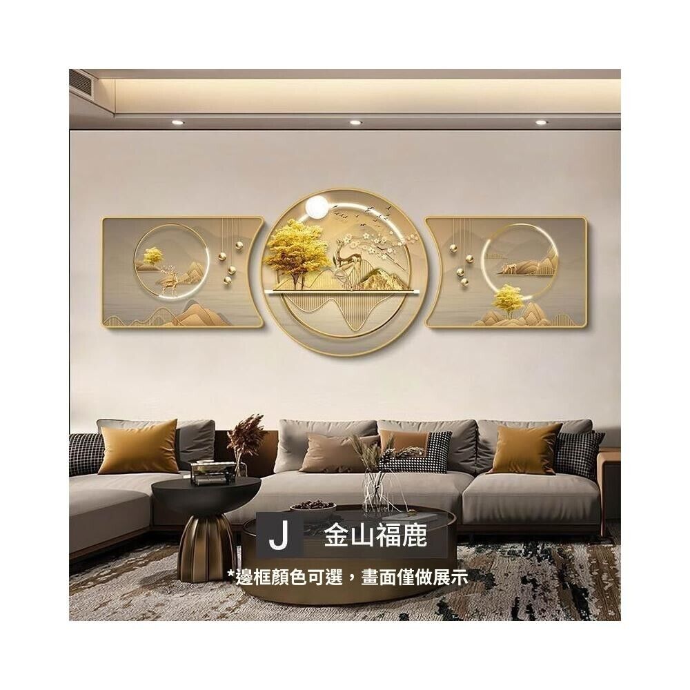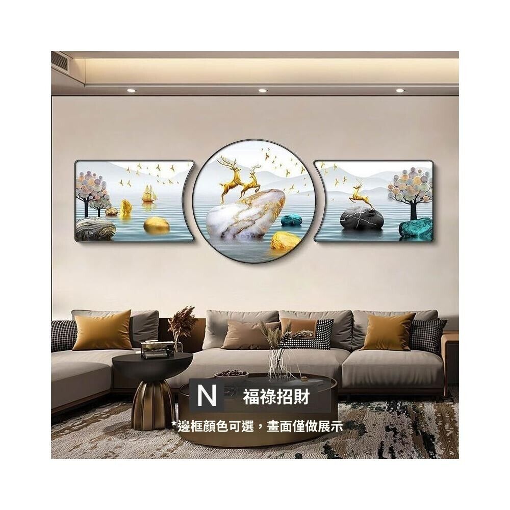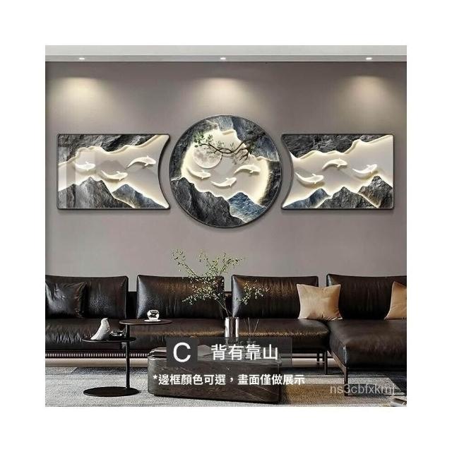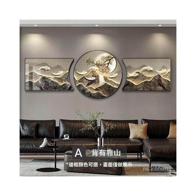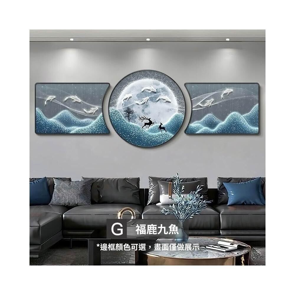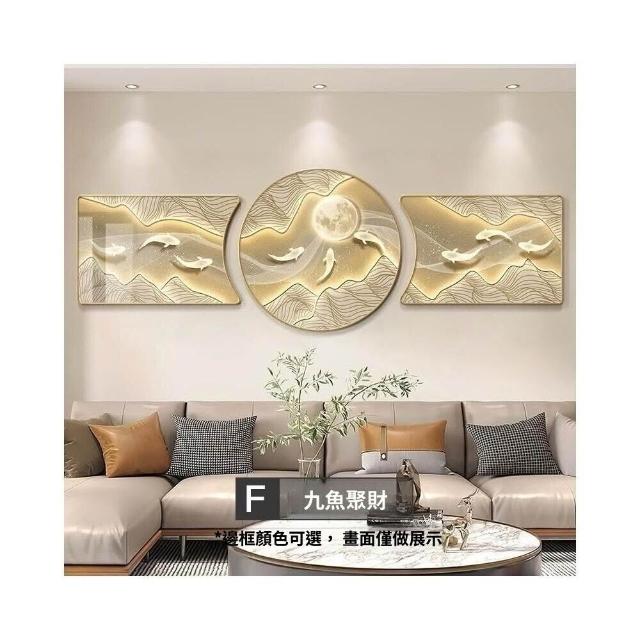 客廳裝飾畵九魚聚財圖壁畵背有靠山高檔大氣沙發背景墻掛畵三聯畵 壁畫裝飾 客廳掛畫 風水畫 高檔大氣沙發背景牆 沙發掛畫