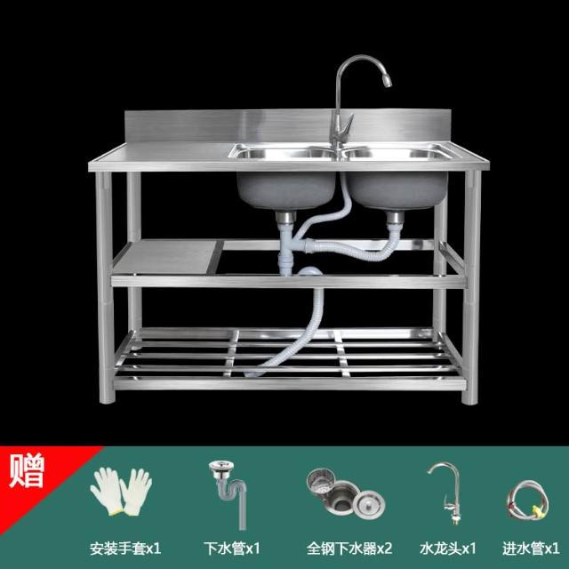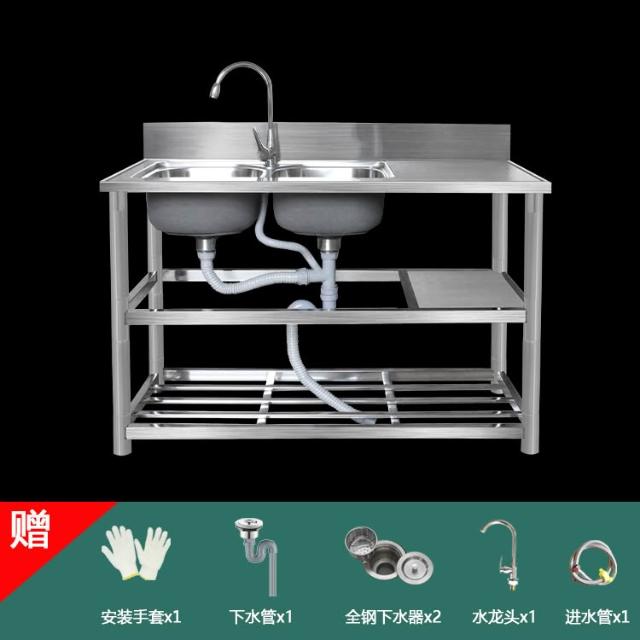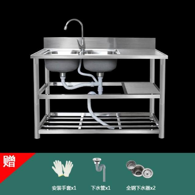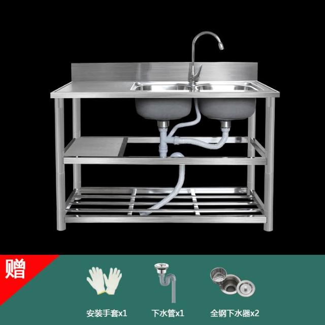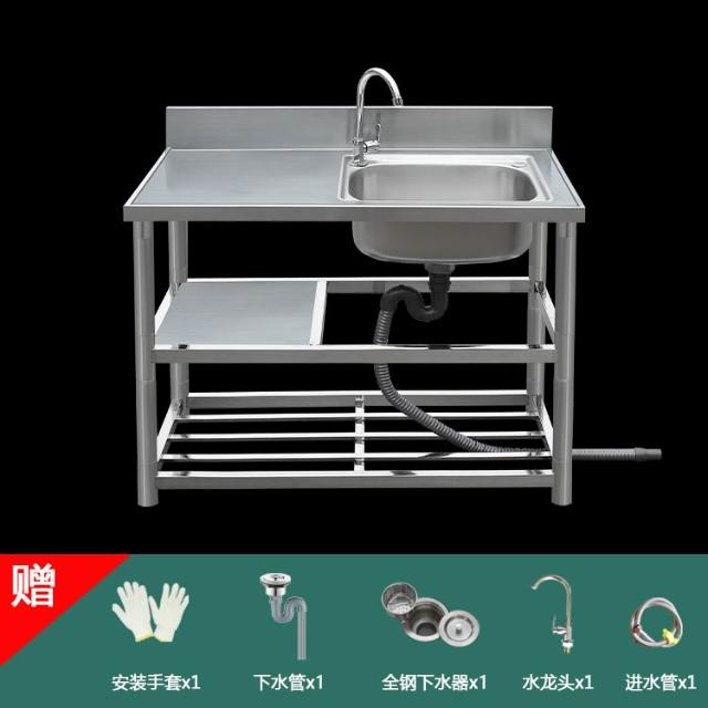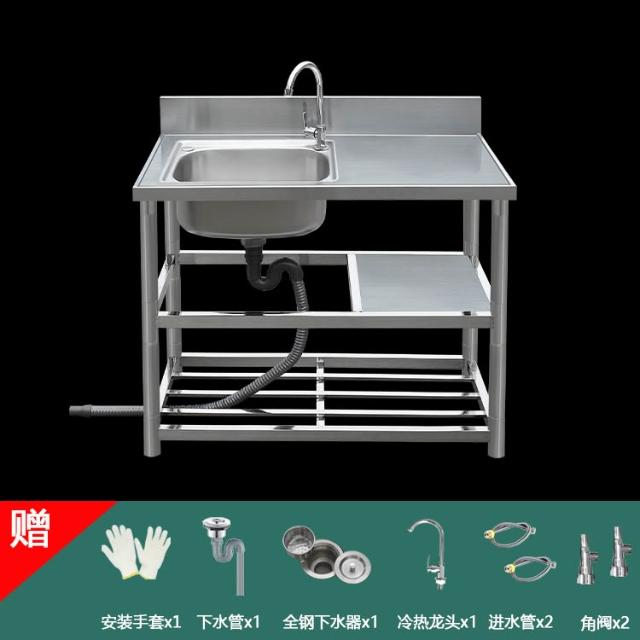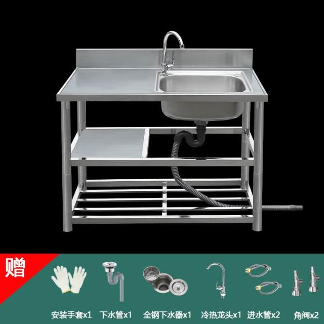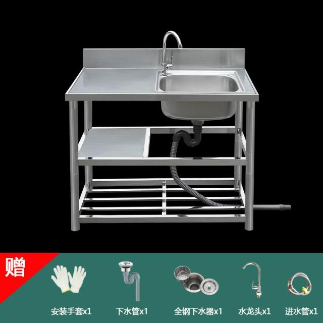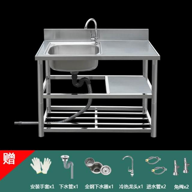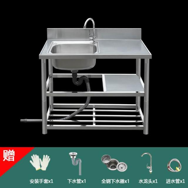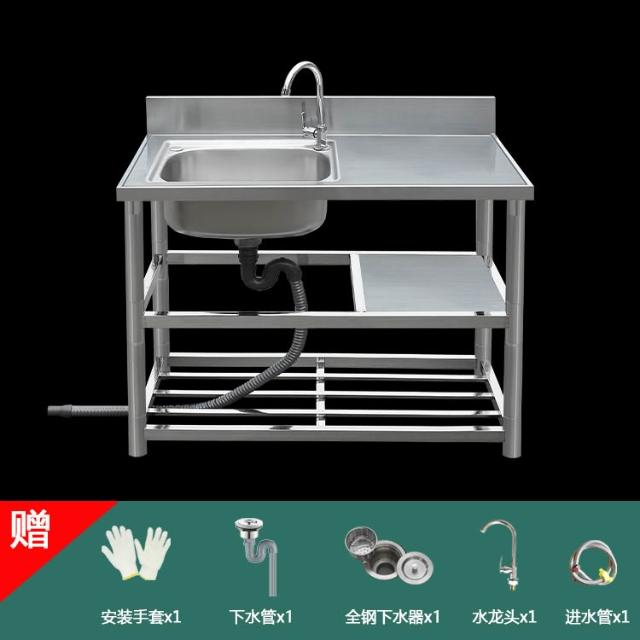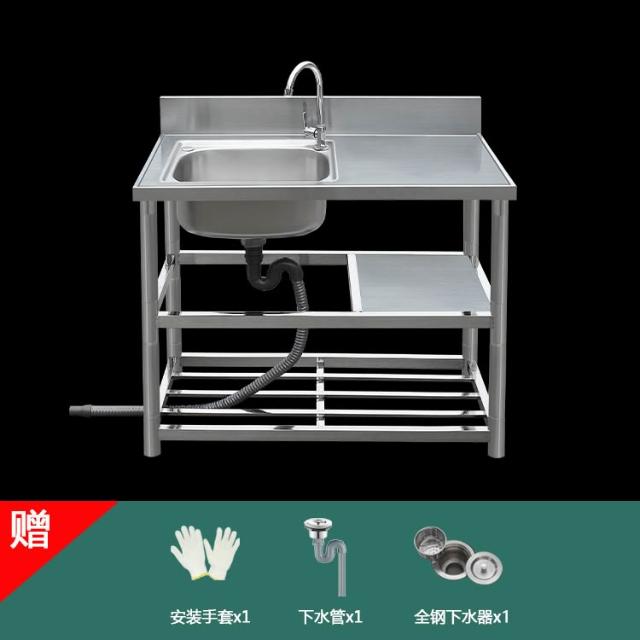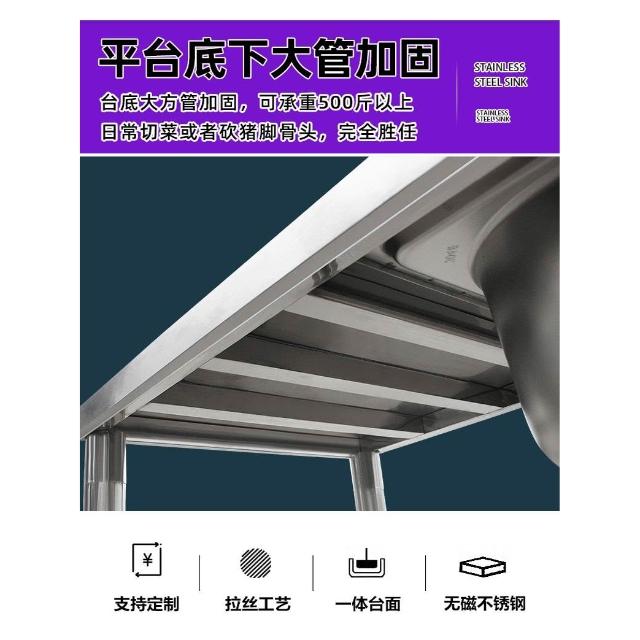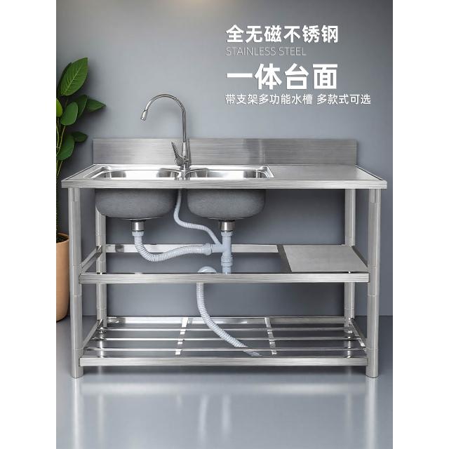 免運 廚房不銹鋼水槽 帶支架簡易洗手盆 洗碗池 臺麵一體式洗菜盆 水池 單槽 不鏽鋼水槽 流理臺 廚房洗手臺平臺一體櫃