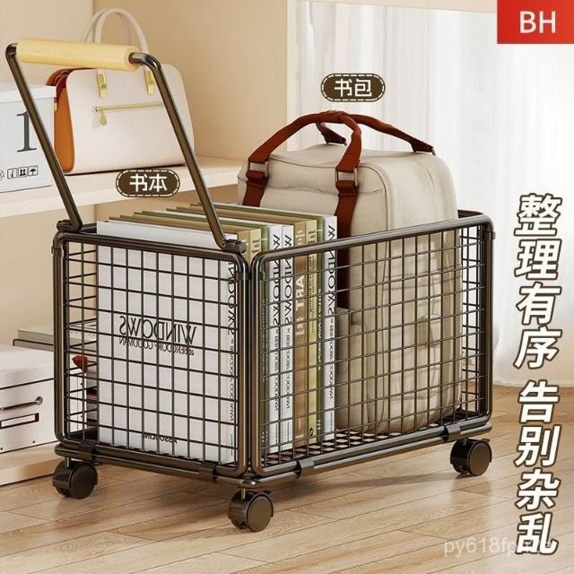 免運 書包收納箱 書包置物架 可移動 放置神器初中生書本收納筐 桌下帶輪小推車