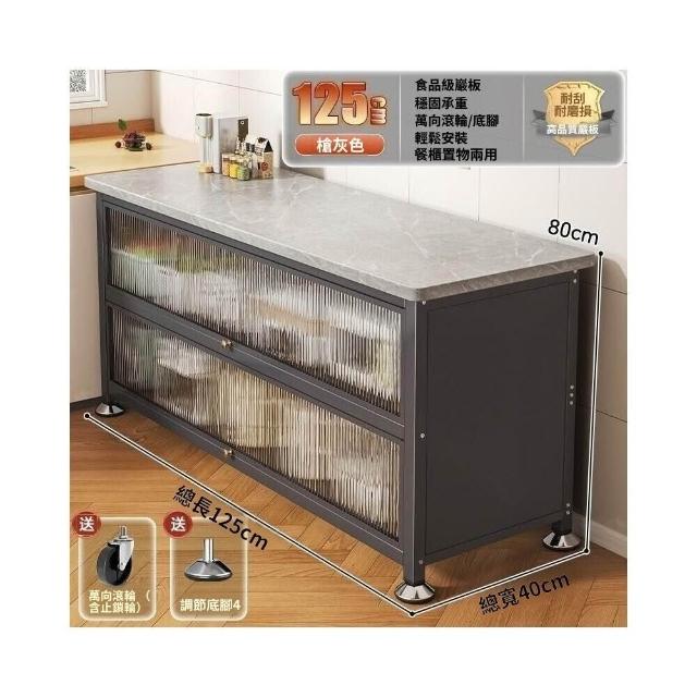免運 台灣熱賣 帶輪子可移動岩板餐邊櫃 廚房置物櫃 收納櫃 餐邊櫃 碗櫃 多功能一體靠墻高櫃 櫥櫃 儲物櫃 置物櫃