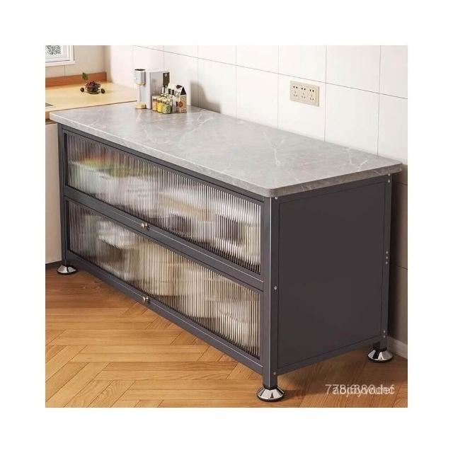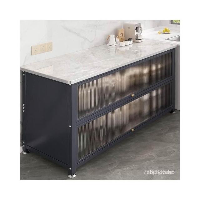 免運 台灣熱賣 帶輪子可移動岩板餐邊櫃 廚房置物櫃 收納櫃 餐邊櫃 碗櫃 多功能一體靠墻高櫃 櫥櫃 儲物櫃 置物櫃