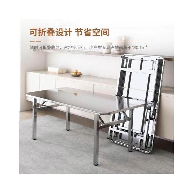 免運 不鏽鋼摺疊桌 餐桌擺攤便攜桌 不銹鋼桌 加厚不鏽鋼摺疊桌長方形家用餐桌長條桌子商用便攜式戶外燒烤擺攤