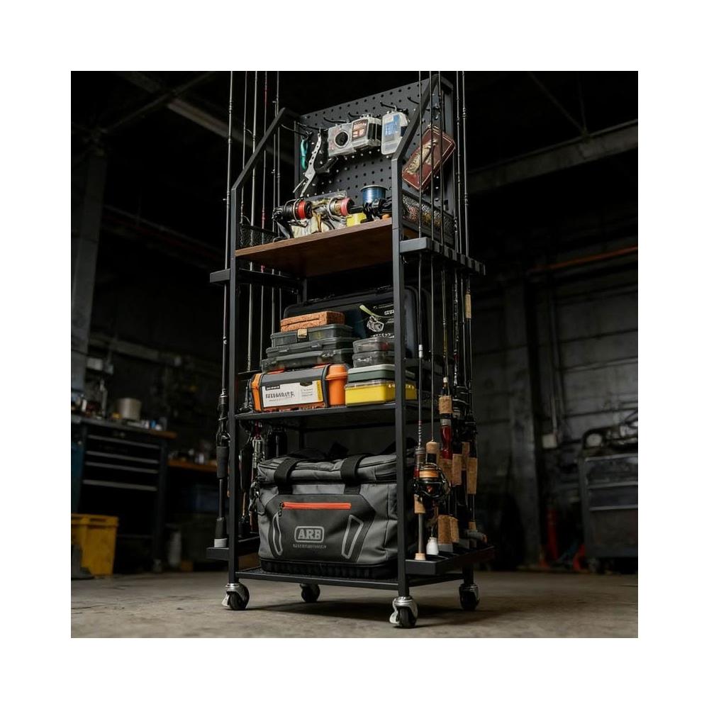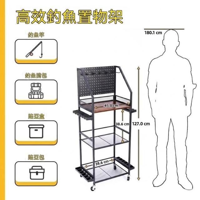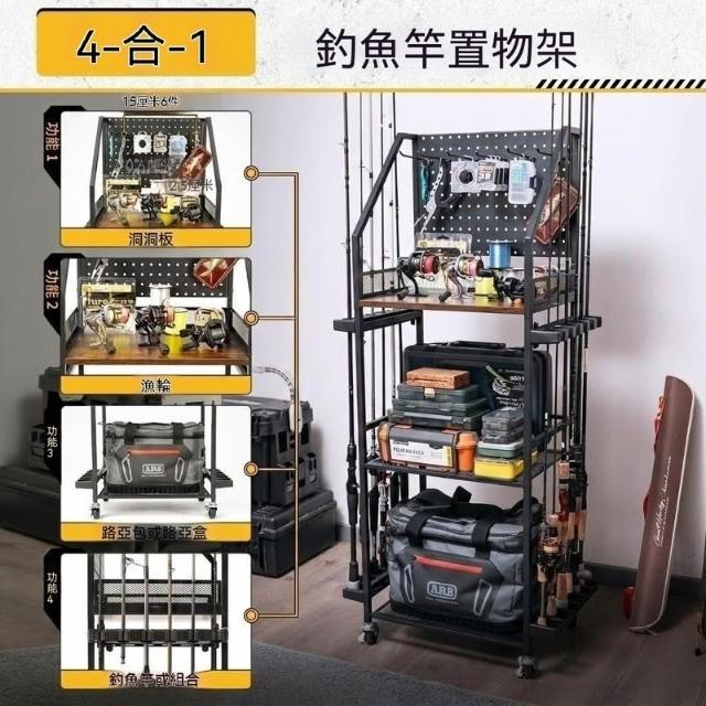 精品/免運 置物架 高端 碳钢鱼竿架 路亚竿溪流竿 通用收纳架 带洞洞板 渔具整理架 可移动帶移動滾輪