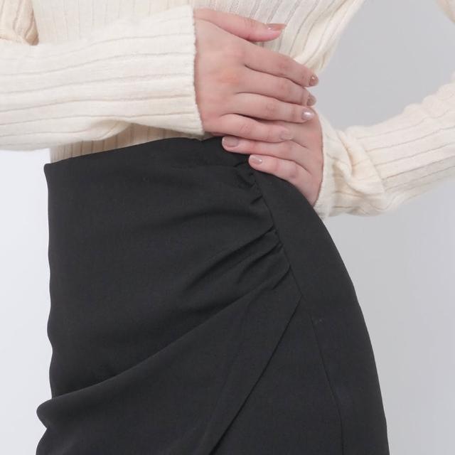 Merite前開衩腰間扭結抓皺設計長裙|黑色 優雅小女人 西裝長裙紐結西裝裙女裝套裝 設計師款 春夏秋冬厚薄適中 百貨專櫃嚴選款