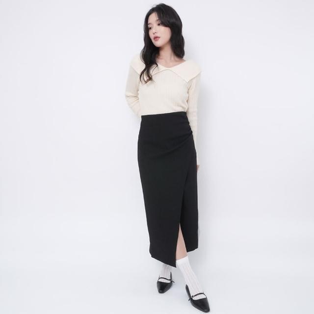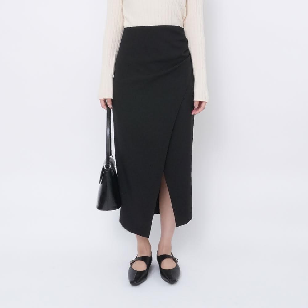 Merite前開衩腰間扭結抓皺設計長裙|黑色 優雅小女人 西裝長裙紐結西裝裙女裝套裝 設計師款 春夏秋冬厚薄適中 百貨專櫃嚴選款