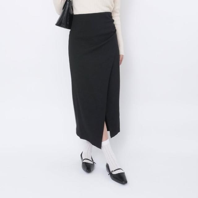 Merite前開衩腰間扭結抓皺設計長裙|黑色 優雅小女人 西裝長裙紐結西裝裙女裝套裝 設計師款 春夏秋冬厚薄適中 百貨專櫃嚴選款