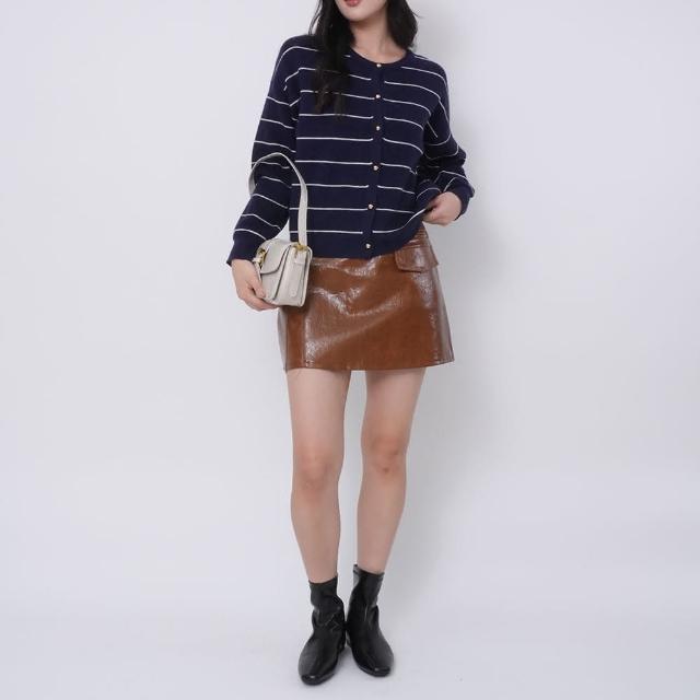 Merite復古紋路裝飾口袋A字皮短裙|棕色 女 短皮裙超軟PU好護理 率性百變穿搭 質感百貨款
