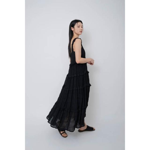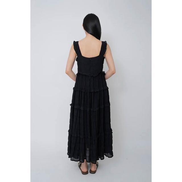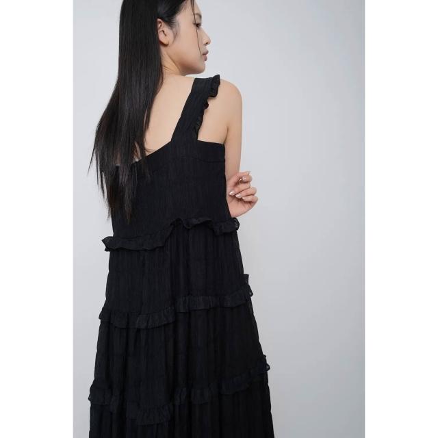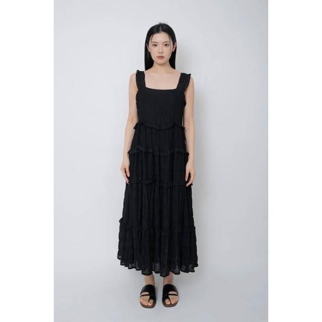 Merite甜美方領褶皺蛋糕背心洋裝|黑 連身裙 連衣裙 長裙女 蛋糕裙 現貨 百貨專櫃女裝 京站B1新光三越站前2F