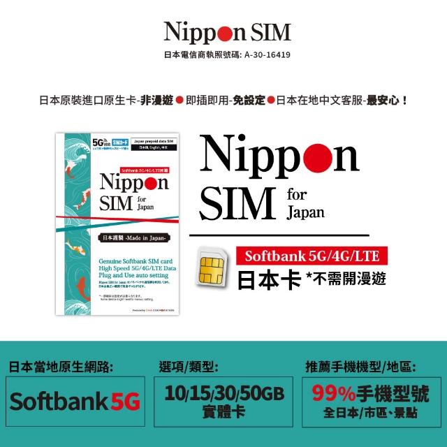 Nippon SIM日本5G上網-Softbank官方SIM卡-總量型/長時效 99%手機適用 iPhone 三星 小米...