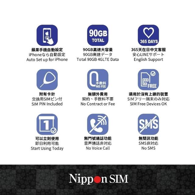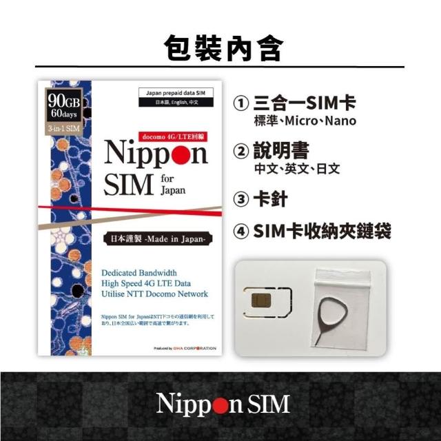 Nippon SIM 日本網卡 原生非漫遊 90GB/60天🇯🇵日本製 Docomo 4G高速 SIM卡 留學2個月