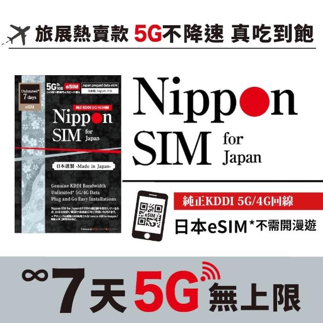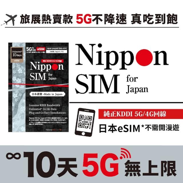 Nippon SIM[日本5G吃到飽 eSIM] Nippon SIM|KDDI不降速|7天10天-2026|支援ChatGPT|熱點分享