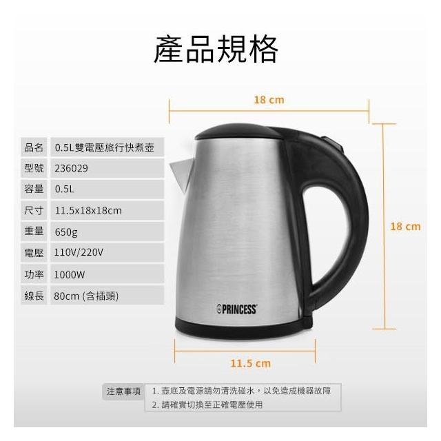 PRINCESS 荷蘭公主荷蘭公主 0.5L雙電壓旅用快煮壺 236029 (110v/220v 通用) (加贈面膜|出國省錢神器)