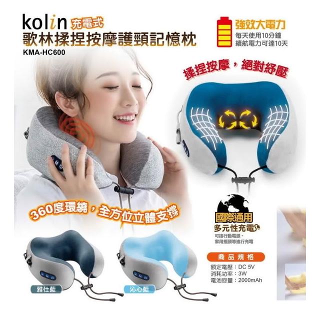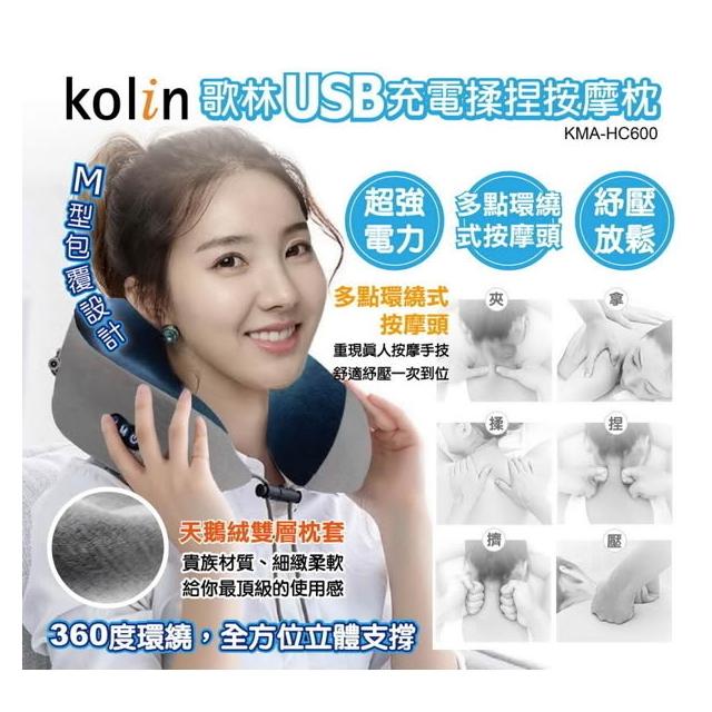 Kolin 歌林USB充電揉捏按摩枕/仿真人手感/記憶枕/護頸 KMA-HC600