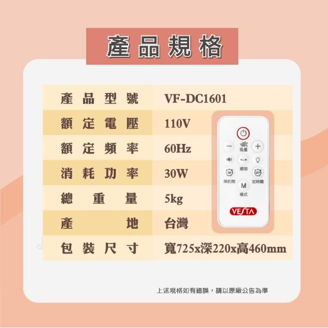 Vesta 維斯塔【VESTA】 維斯塔16吋DC直流馬達電風扇 VF-DC1601