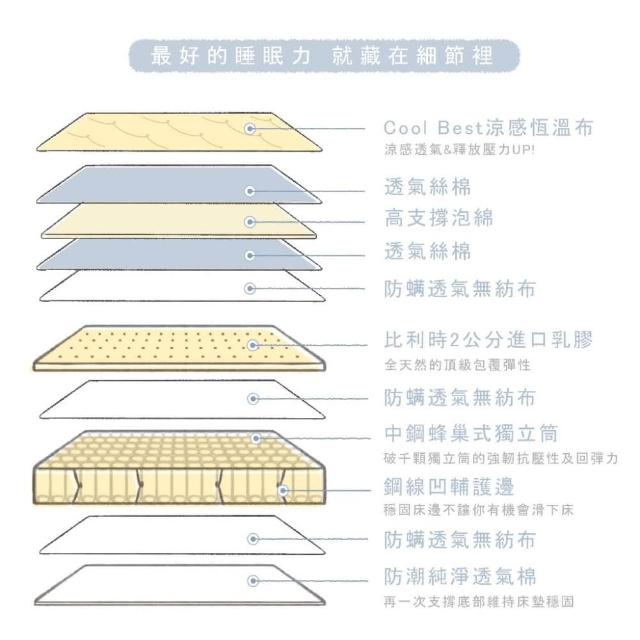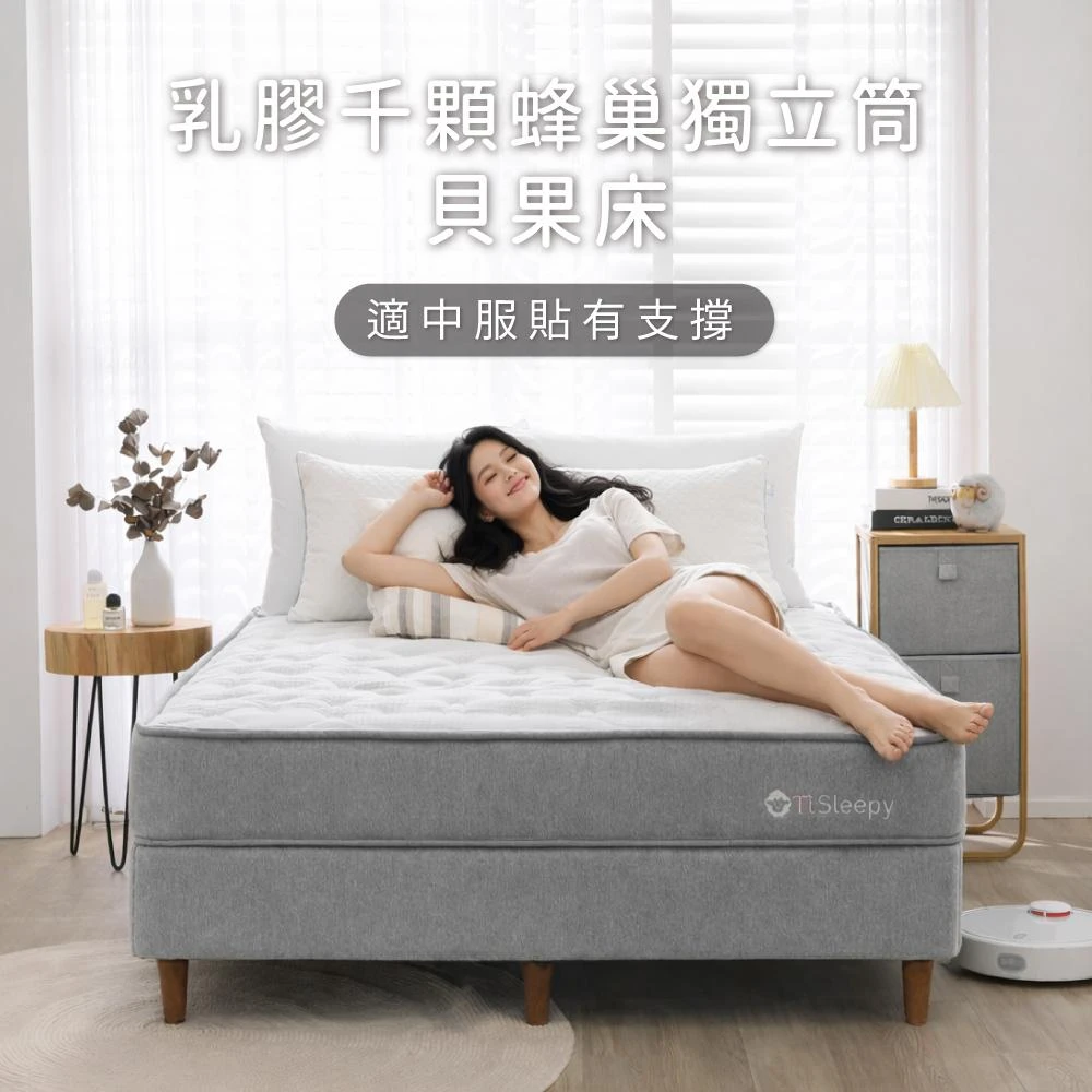 TiSLEEPY 鈦享睡涼感 多顆獨立筒 乳膠床 貝果床墊 台灣製 單人 雙人 加大 客製(25cm高 涼感透氣布 適中Q硬 千顆 蜂巢獨立筒