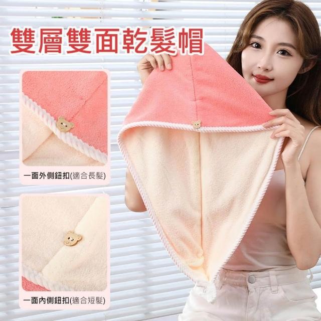 D+ 滴家雙層珊瑚絨乾髮帽 雙拼色擦髮巾 加厚吸水乾髮毛巾 包頭巾 擦髮巾 速乾浴帽 正反兩用