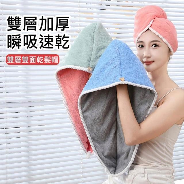 D+ 滴家雙層珊瑚絨乾髮帽 雙拼色擦髮巾 加厚吸水乾髮毛巾 包頭巾 擦髮巾 速乾浴帽 正反兩用